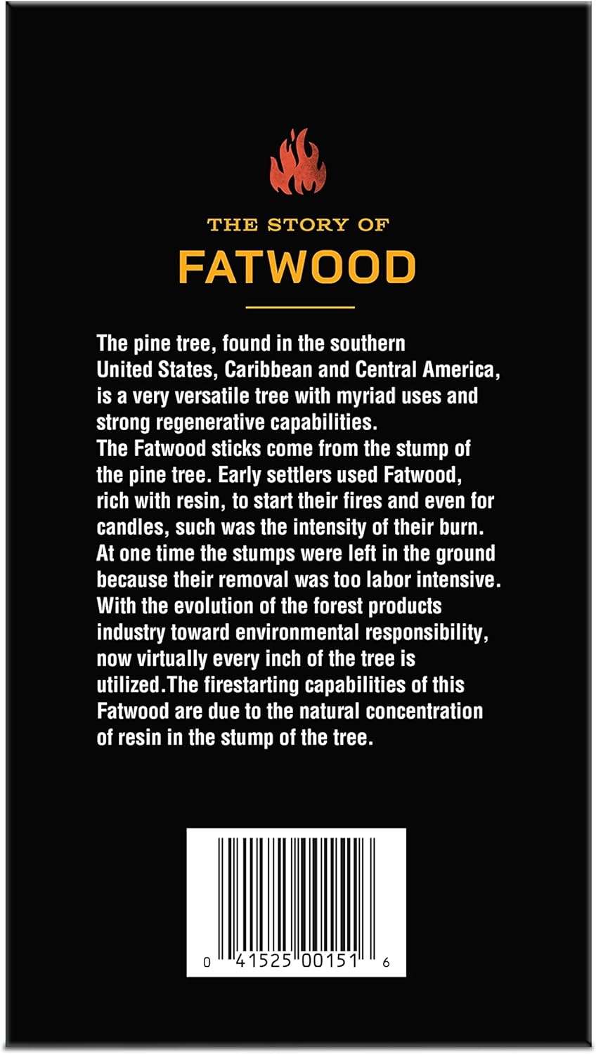 All-naturalstarterstikkfatwoodfirestartersareaquickandconvenientwaytokindleyourwoodfire.Harvestedfromthehardenedstumpsofresin-richpinetrees,starterstikkfatwoodturnssparkintoflame,nature’sway.