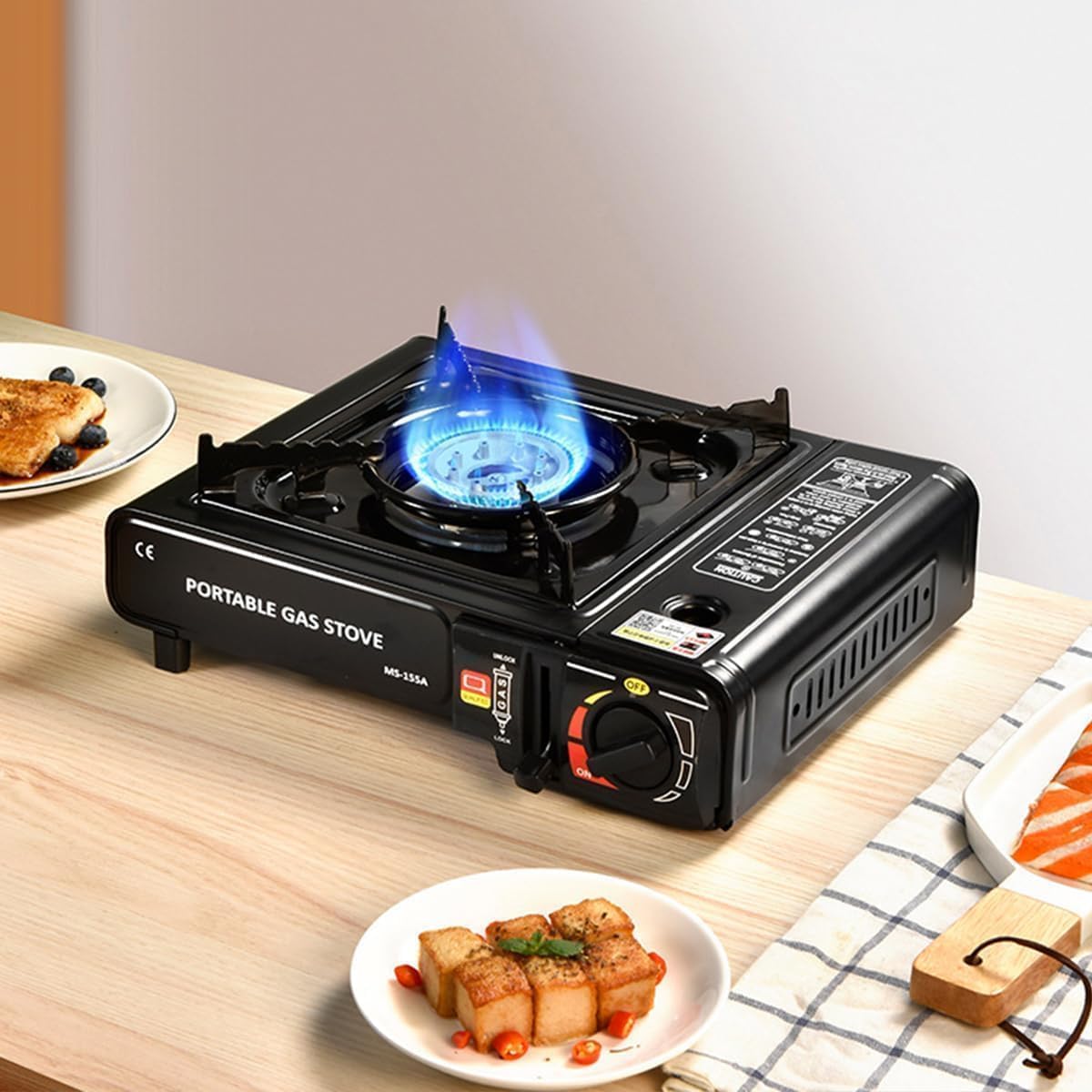 【HIGH QUALITY】: High temperature resistant core material, corrosion resistant, non rusting; High quality stainless steel undergoes 4000 repeated impacts, making the product lighter and thinner while improving quality. The overall surface is smooth, easy to clean quickly, and does not rust. The mini gas stove is very sturdy and can be used for a long time.