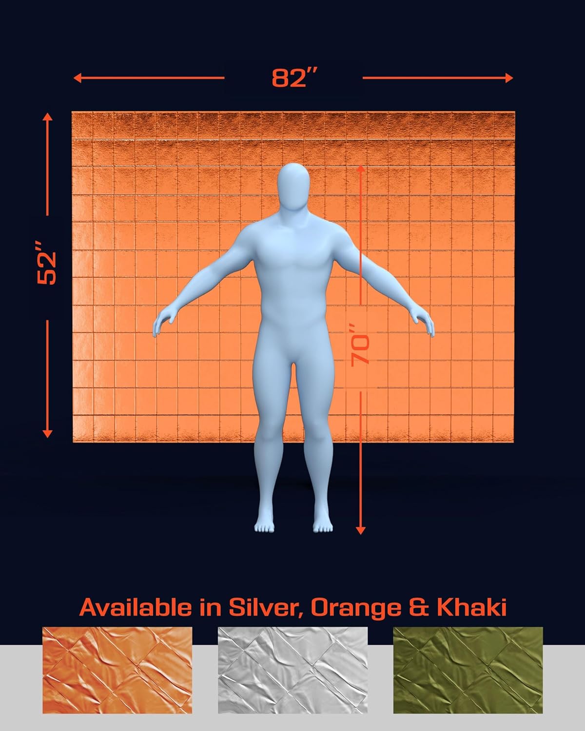 Emergency Blankets for Survival: Our 82″ x 50″ emergency space blanket is a vital addition to your survival gear. These mylar space blanket will help retain up to 90% of body heat, ideal for emergency situations.