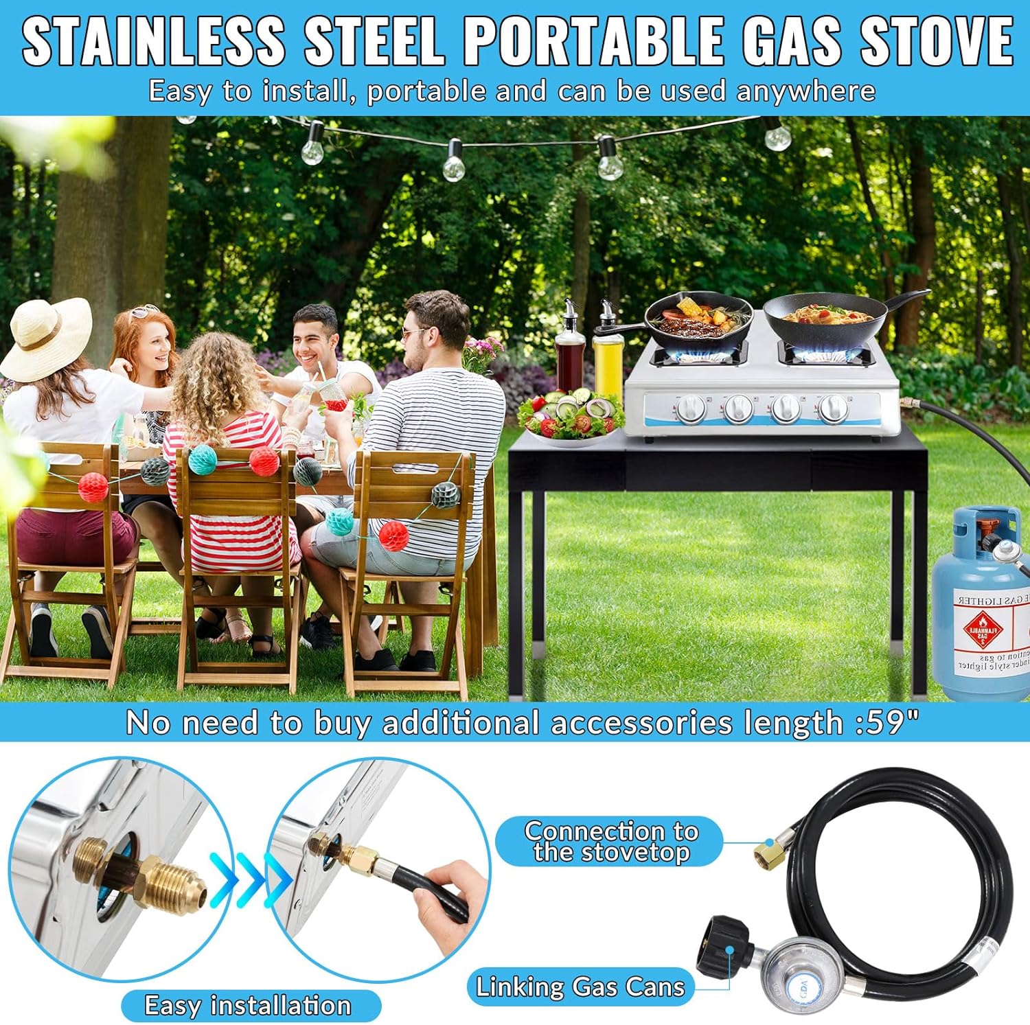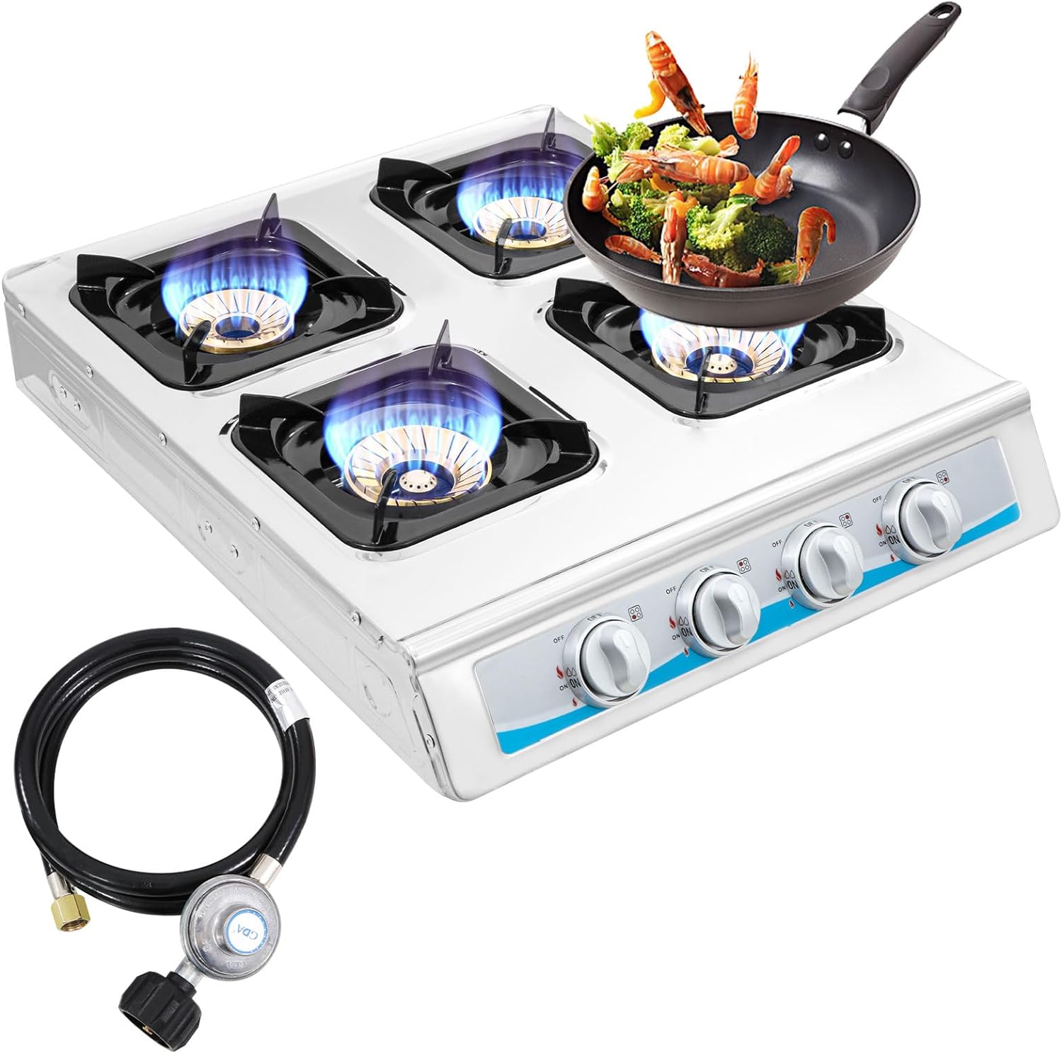 【Complete Accessories】-4-burner gas cooktop with CSA-approved gas regulator and hose for ease of use.