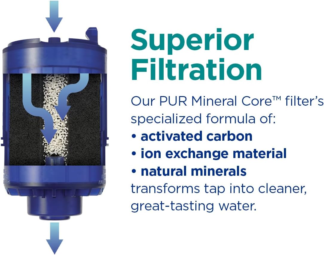 PUR MINERAL CORE FILTER TECHNOLOGY for a crisp, refreshing mineral water taste.