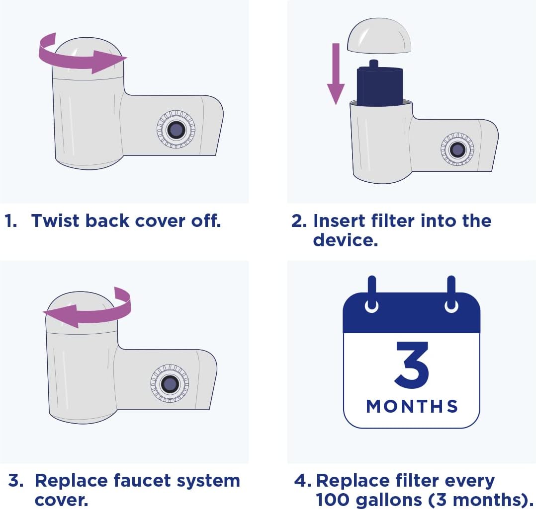 LONG LASTING — each PUR PLUS Faucet Mount Water Replacement Filter is engineered for up to 100 gallons of cleaner, safer water filtration or 3-months of regular use.