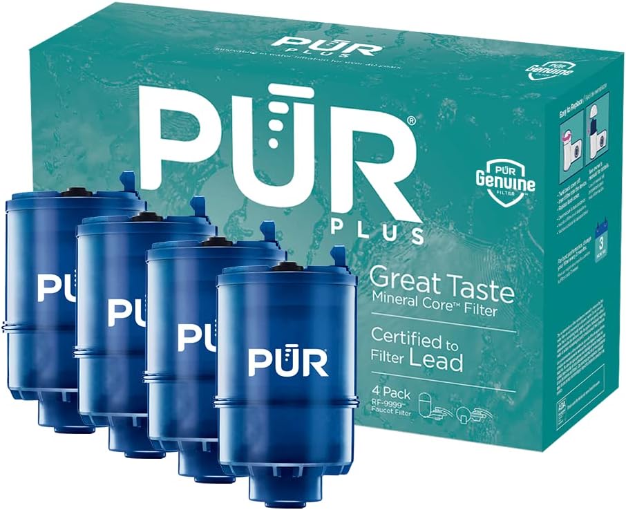 To confidently and continuously enjoy, cleaner, better tasting mineral water, remember to change your PUR PLUS Faucet Mount Water Filter (RF9999) every 3 months or after 100 gallons of use. As the #1 brand in faucet filtration***, the PUR PLUS Faucet Mount Replacement Water Filter reduces 10x more chemical & physical substances compared to Brita’s leading pitcher filter* through its powerful 3-in-1 genuine PUR filtration technology using natural minerals. It has also been rigorously tested and certified by WQA and NSF as the only filter to reduce 70 chemical & physical substances, including lead, microplastics, chlorine and mercury.** Be cautious of ‘off-brand’ water filters. They are not tested nor certified to filter the same as Genuine PUR PLUS Faucet Mount Water Filters in PUR and Beautiful by PUR systems. Genuine PUR PLUS water filters are the only water filters certified to reduce chemical & physical substances when used with your PUR PLUS or Beautiful by PUR Faucet Mount System. At PUR, we believe that everyone deserves cleaner, better-tasting drinking water. That’s why we’ve been developing innovative, superior water filtration technologies for over 35 years. Disclaimers: *Versus best-selling Brita® pitcher filter OB03. Brita® is a trademark of Brita LP. ** Like other leading brands, PUR does not filter microbes. As of 7/1/23 Brita® and ZeroWater® were not certified to filter microbes. Brita® is a trademark of Brita LP. ZeroWater® is a trademark of Zero Technologies, LLC. ***Based on Nielsen sales data for the 52 weeks ending 7/1/23.