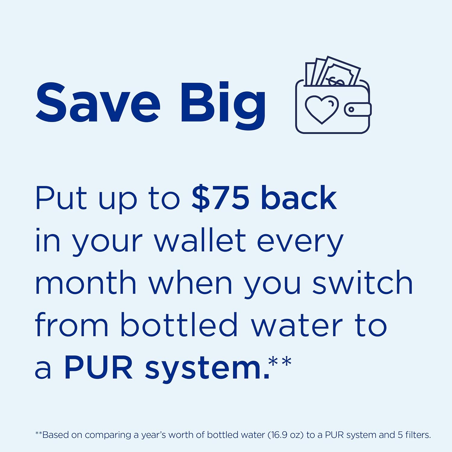PUR PLUS pitcher & Dispenser replacement filter can help you save up to $75 per month compared to bottled water. **