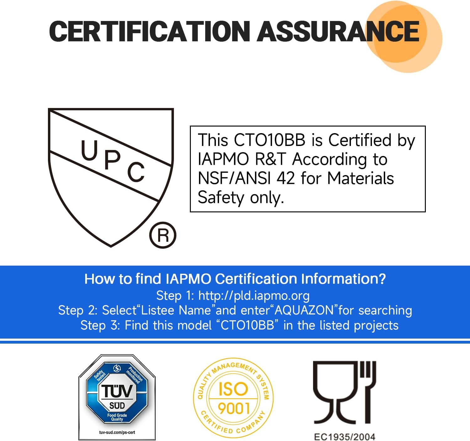 We have obtained certifications from leading industry organizations such as IAPMO, European TUV, ROHS, UK WRAS, ACS, CSA,ᅠBPA Free, and Water Mark. Our products are rigorously tested to ensure that they meet the highest standards for quality and safety.