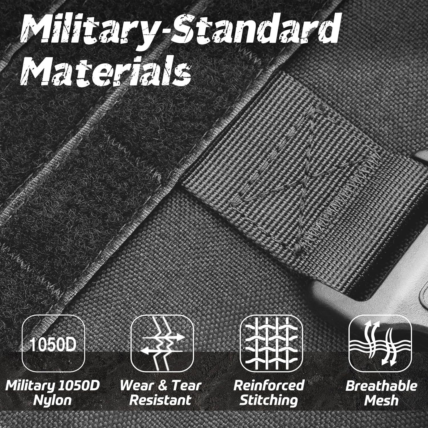 Military-standard Material: Heavy duty vest made of 1050D Nylon with sturdy stitching for extra durability and wearability, suitable for all field use. Two Metal Shoulder Buckles can bear great pulling force, ensuring your dog is safely harnessed during training, hunting, working, and any other occasion. Well padded in every pressure load point to protect your dog, while the breathable air mesh keeps your dog ventilated and comfortable