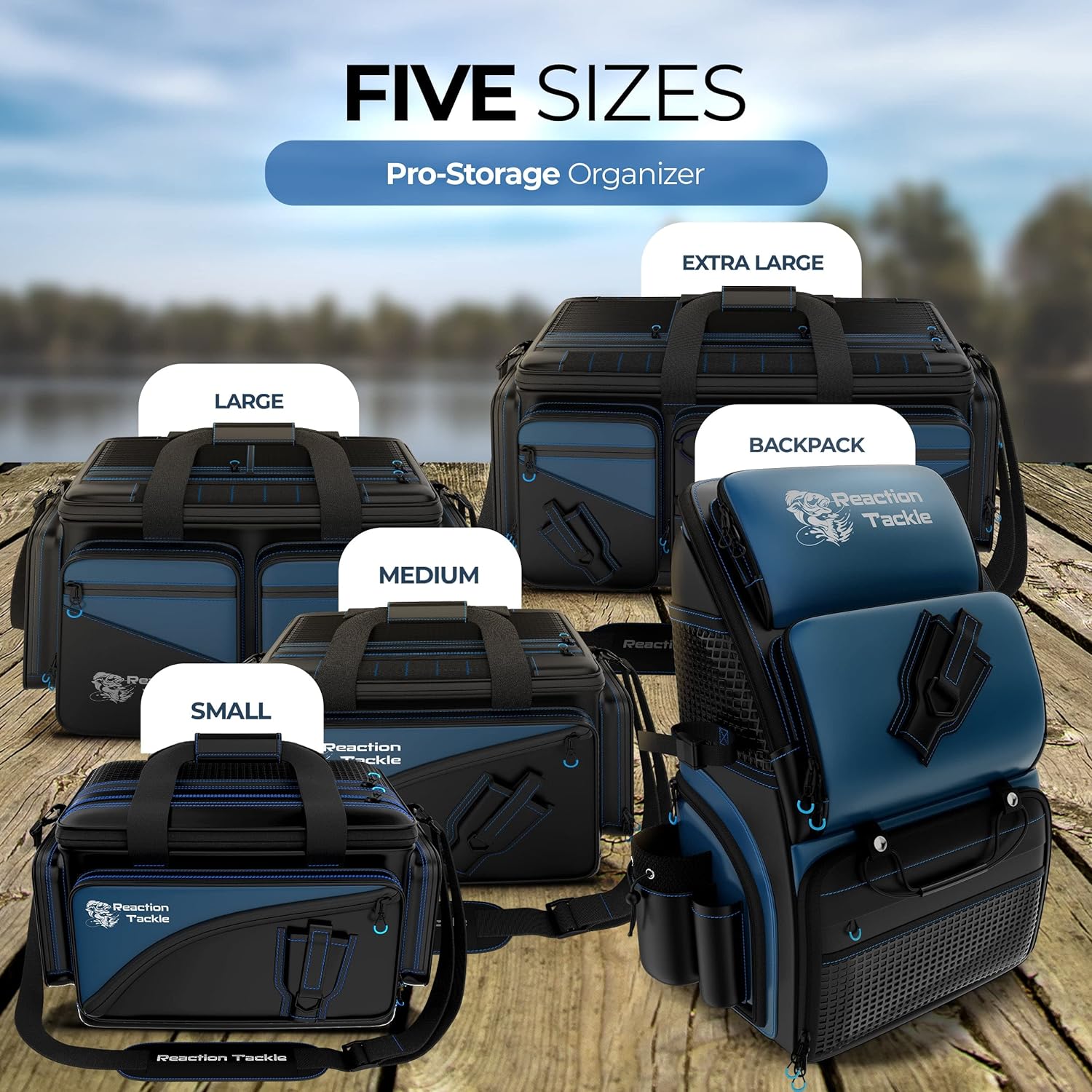 Reaction Tackle strives to provide high-quality fishing supplies and fish tackle to make fishing easier, convenient, and more enjoyable. Our customers’ satisfaction is what we strive to achieve, and our products are aimed to be easy to use and convenience-oriented to make for a happy customer. The Reaction Blue and Black Tackle Bag are designed to make every fishing trip easier! It’s made with 1000D PVC waterproof materials, making it a bag that prioritizes comfort, has the strength and capacity to take care of your tackle boxes, and can get wet without getting damaged. The waterproof bottom makes sure the bag stays dry even when kept on wet surfaces so that you don’t have to deal with wet shirts and car seats on your way back. It’s made durable and strong, giving it a long life as your fishing companion and home to your tackle boxes. The addition of multiple straps prioritizes comfort and convenience, giving you multiple options in terms of how you want to carry the bag. If one way gets difficult, you have the option to switch to another and gain some relief without any delay. The tackle backpack is available in 3 sizes to make sure that whatever your storage needs may be, our bags can meet them. The medium size can hold 7 3600 trays, the large can easily accommodate 7-8 3700 trays in the main compartment and 4 additional trays in the front and side, while XL can store up to 12 3700 trays in the main component, alongside 4 additional trays in the front and side. This gives you plenty to choose from when it comes to the size and capacity that suits you most. Our fishing tackle storage is made to handle your fishing needs well, and with it, you’ll feel the difference. A better fishing experience is one purchase away. Add to cart now!