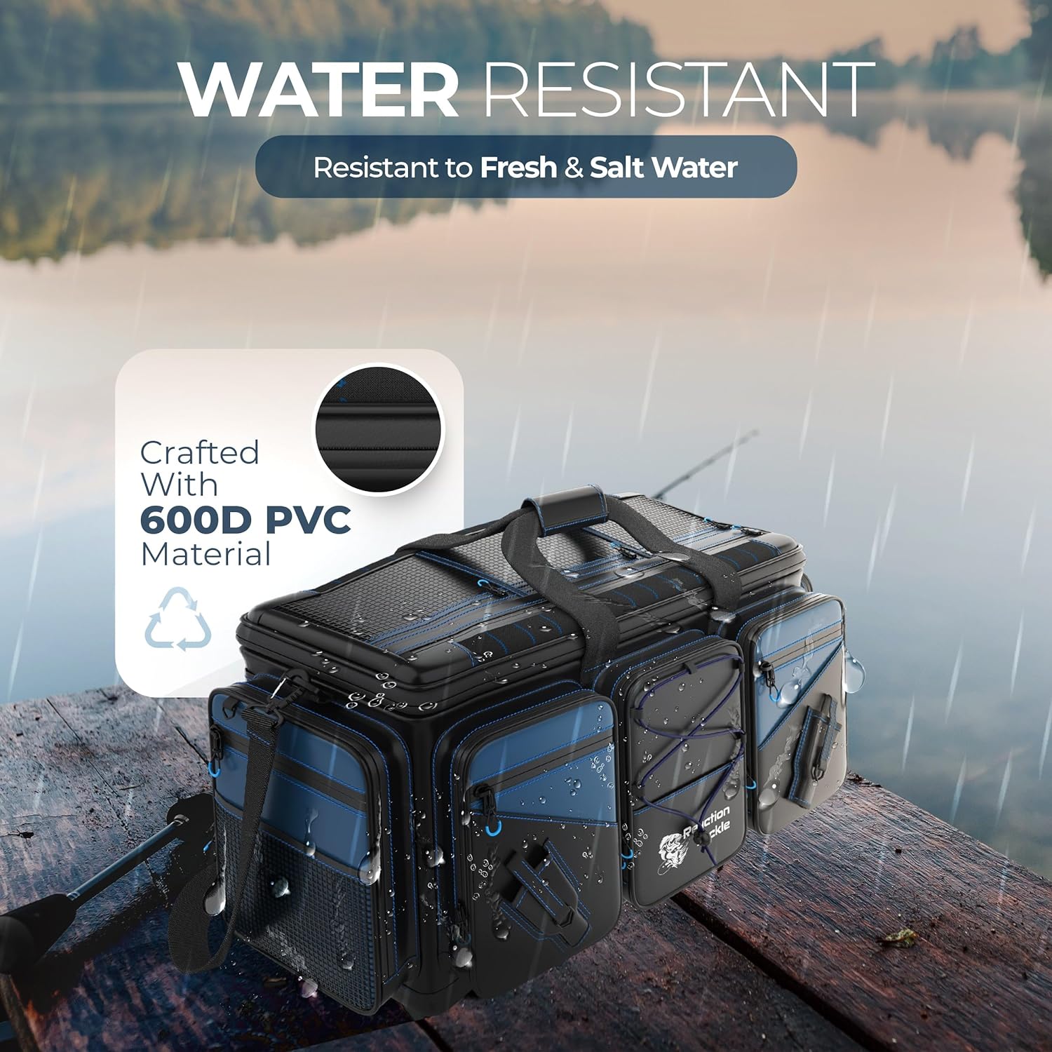 HIGH-QUALITY – The saltwater tackle bag is made of high-quality 1000D PVC waterproof material, making it durable, comfortable, and water-resistant. This makes it the perfect companion and tackle box storage space for your fishing trips