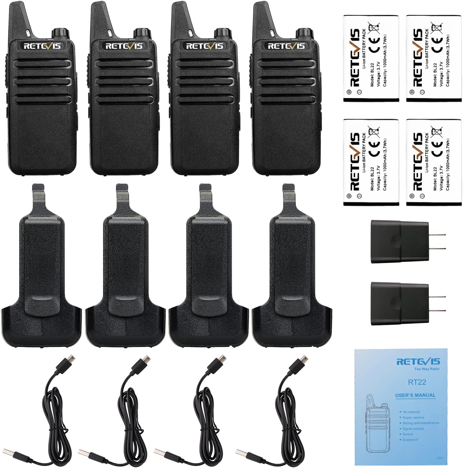 Retevis RT22 Two Way Radio Long Range Rechargeable,Portable 2 Way Radio,Handsfree Walkie Talkie for Adults Cruise Hiking Hunting Skiing(4 Pack)
