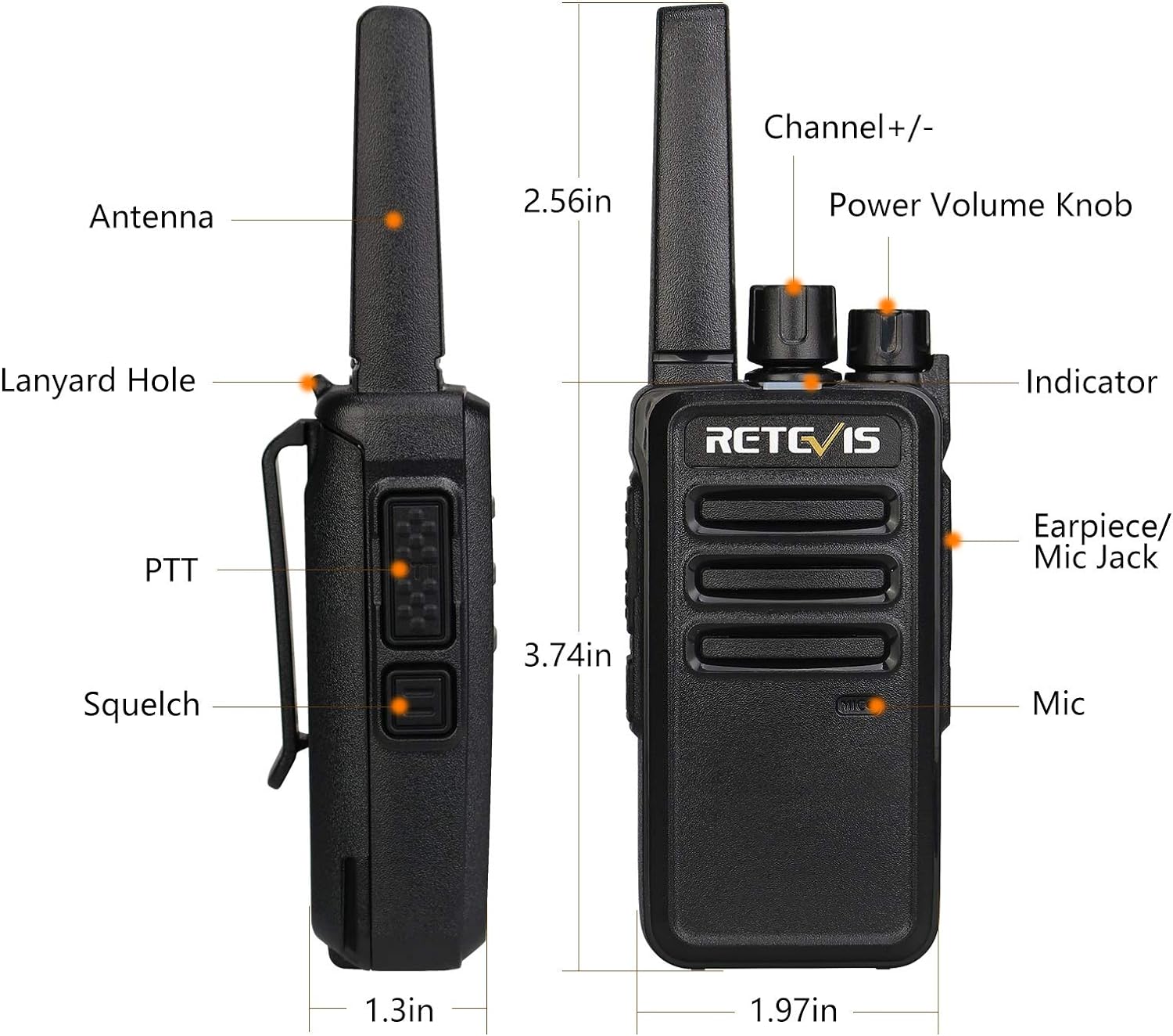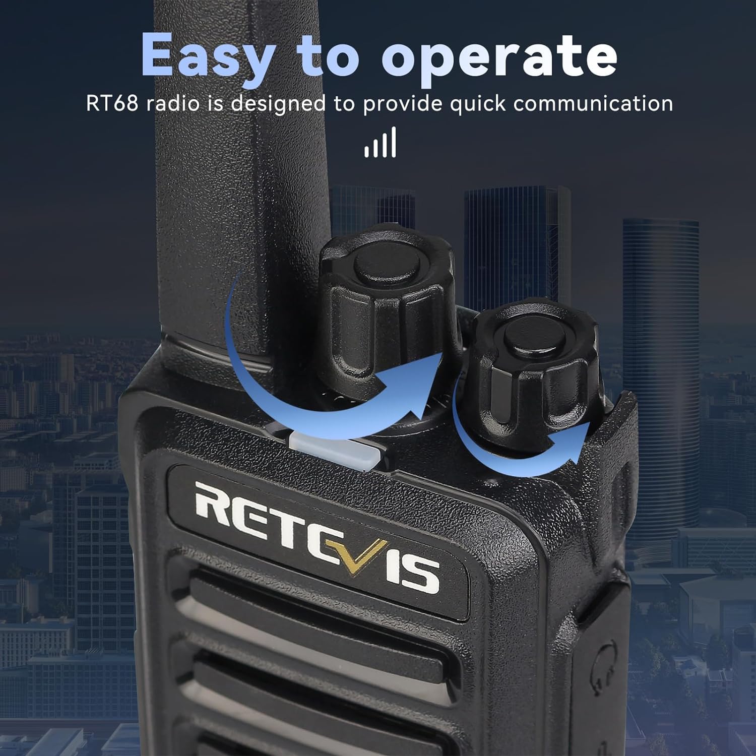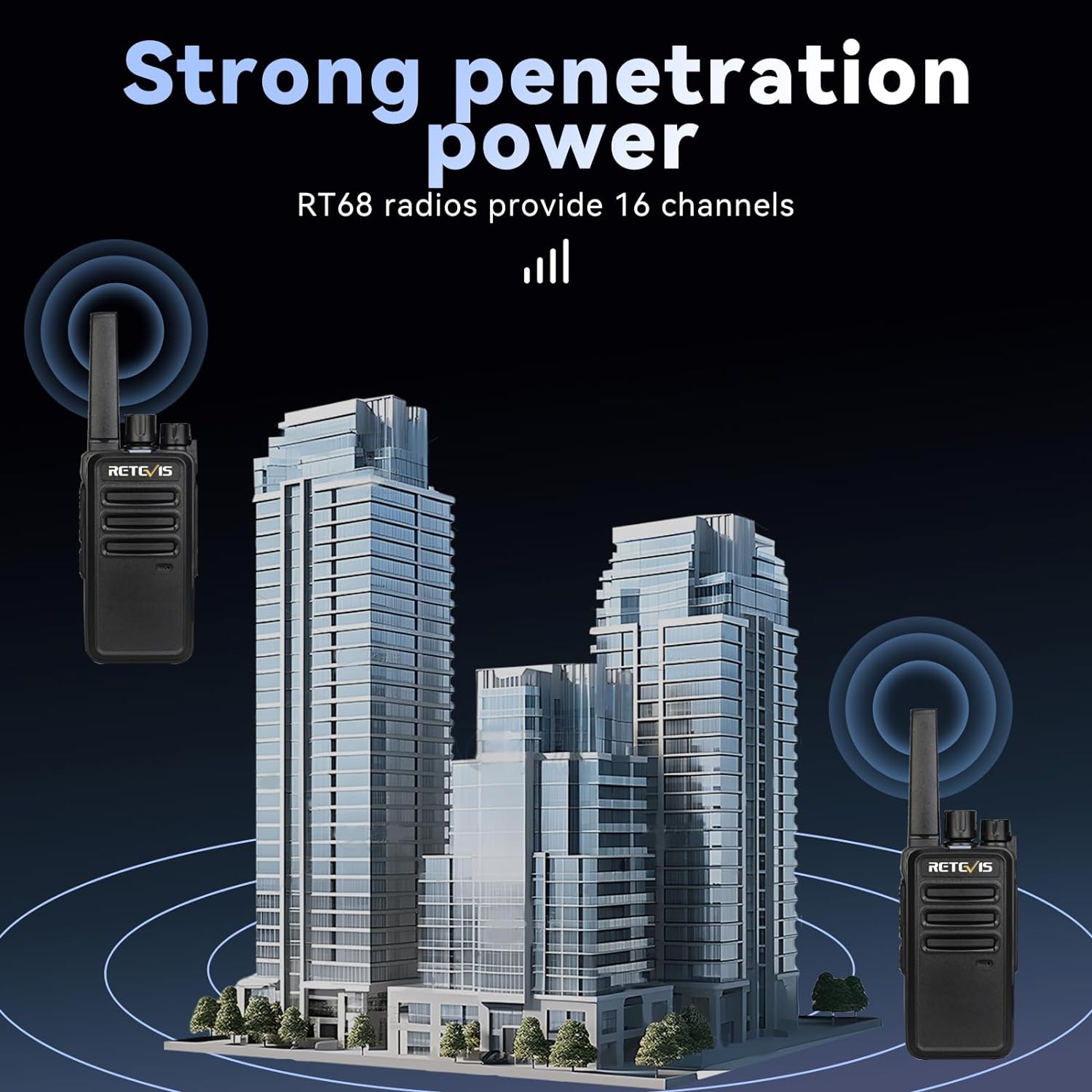 Retevis RT68 two way radios provide clear communication and excellent range in a compact and rugged design. RT68 2 way radio is license free! ideal for restaurants, retail, schools, construction, manufacturing that require business grade communications without a costly business frequency license.