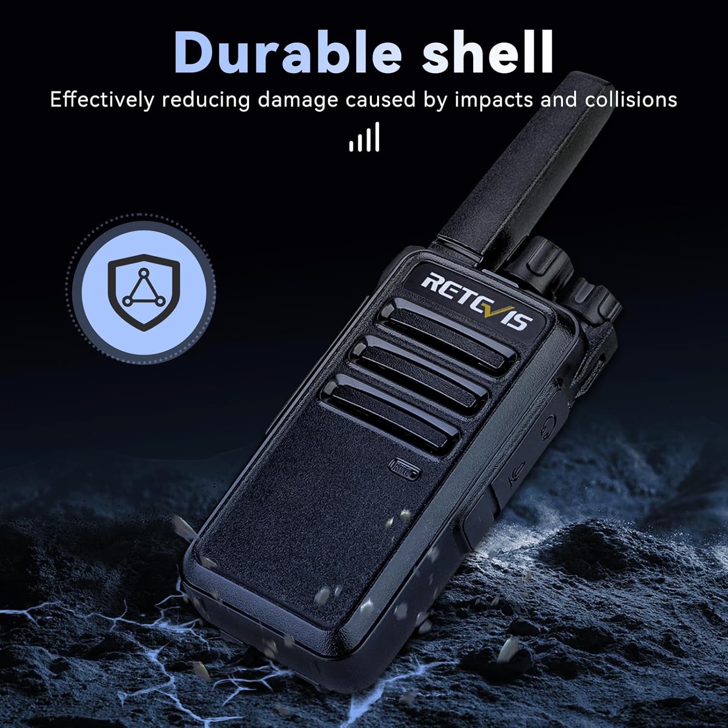 Palm-sized radio features hardened durable shell which effectively reduces damage caused by impact and bumps