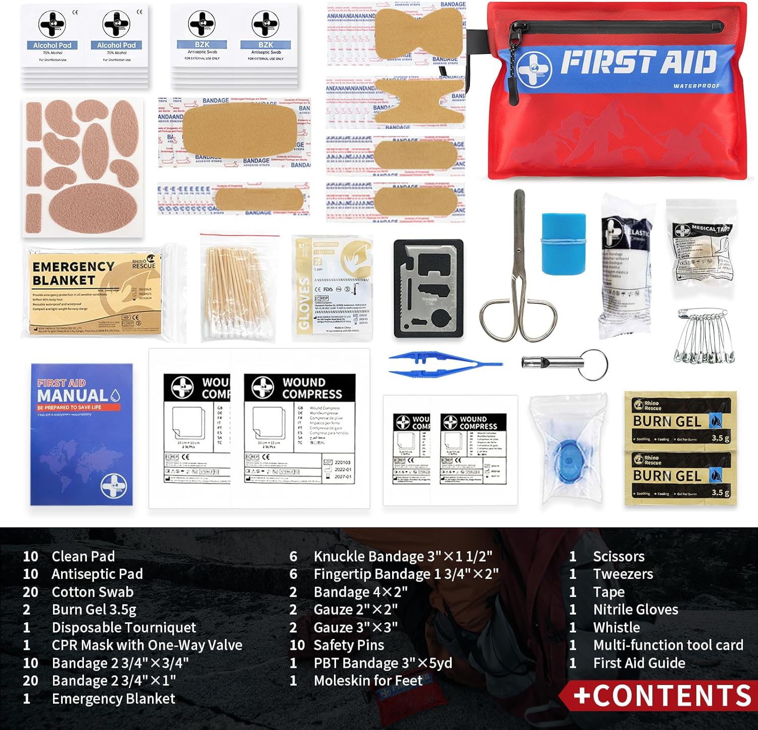 Enjoy Your Activity — Transition seamlessly from backpacking, hiking, climbing, camping to kayaking without needing to alter your first aid kit. The mini first aid kit is indispensable for outdoor activities. This medical kit is also a valuable asset for car, vehicles and bicycles in case of unexpected moments.