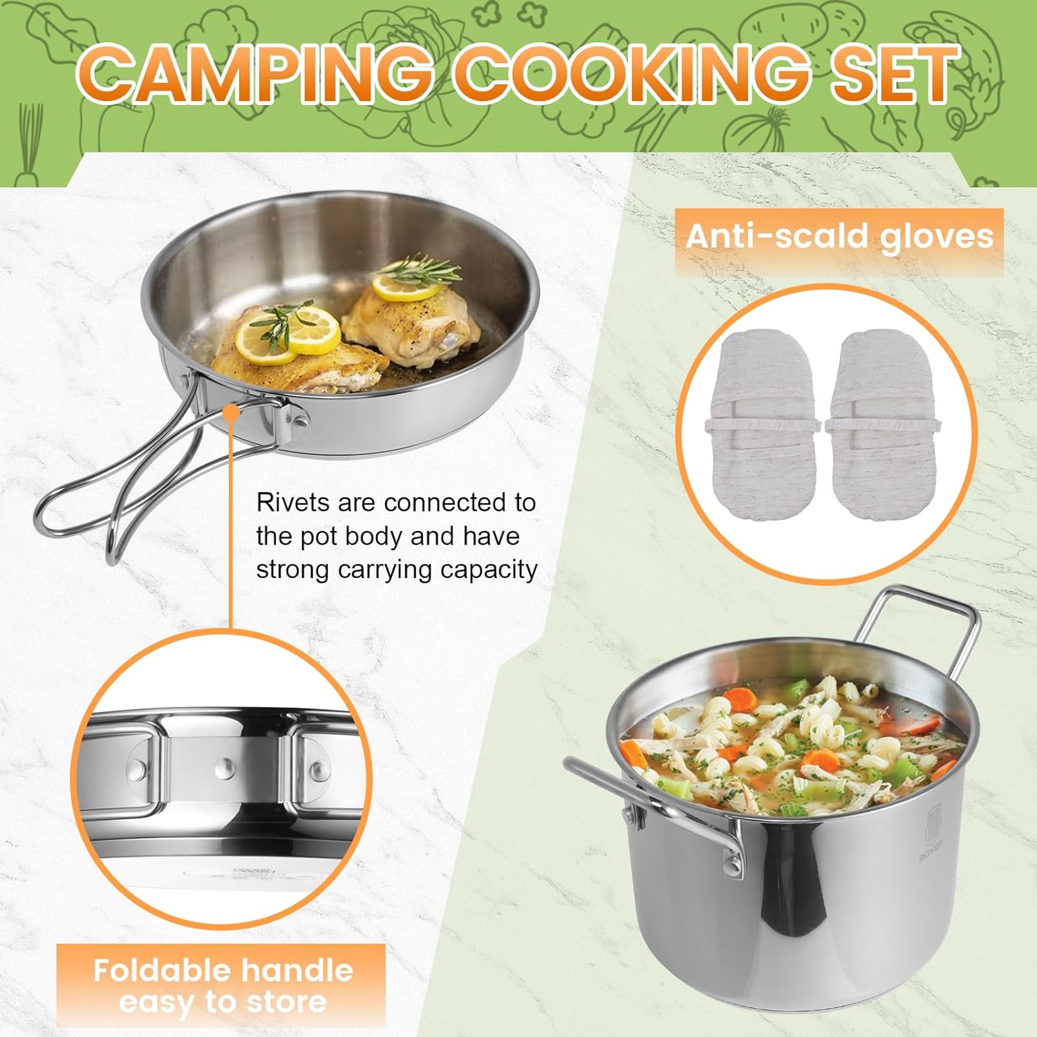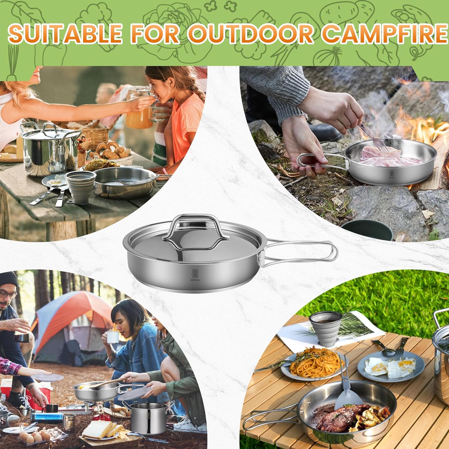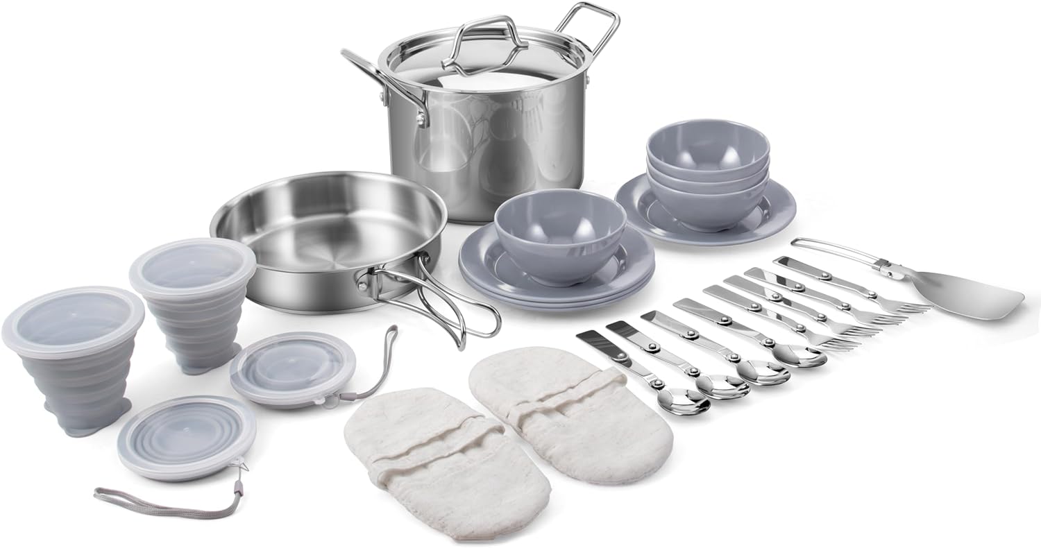 ♨ Practical & Portable:They come with a handy, lightweight travel bag, collapsible cups and a frying pan with adjustable handles for extra storage space.
