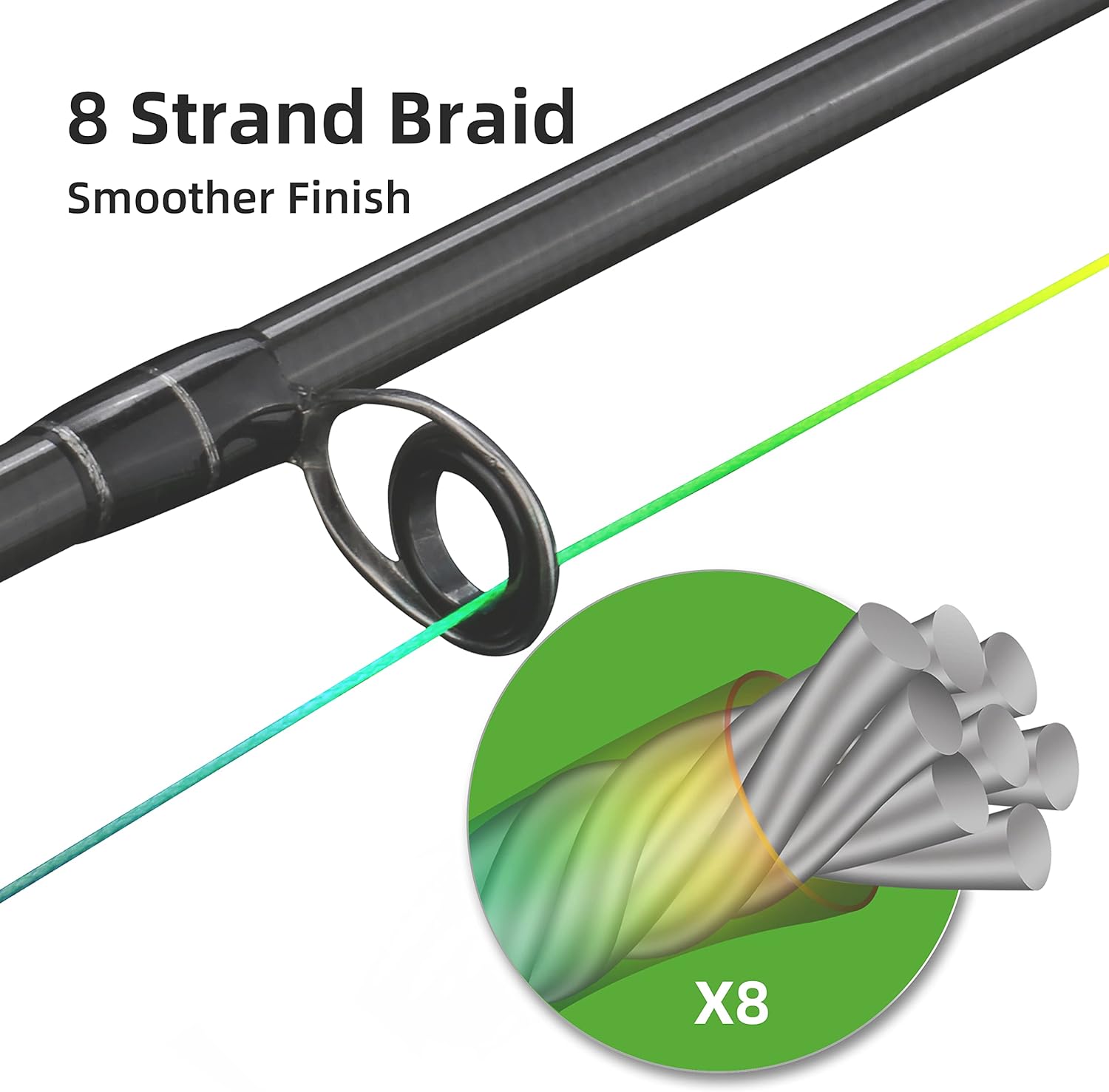 Strong Knot Strength: The 8 incorporated strands braided line allow you to easily tie a more solid knot, to decreases the likelihood of losing your “big one”!