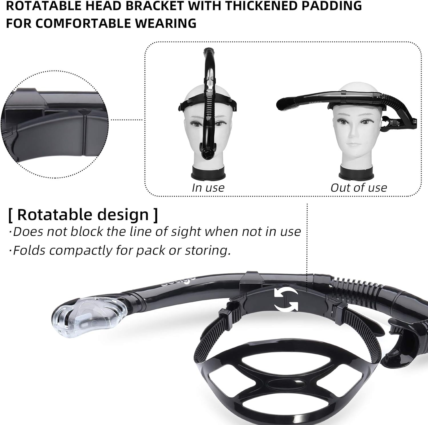 🏊♀️Comfy Pad & Rotatable Design – Engineered thickened head-pad sits firmly on head delivers comfort and eliminate movement when flip turns and all four strokes.Quick adjustable universal fit padded head strap designed to securely and comfortably stay in place with every swim exercise, eliminating headaches and pinching. Unique Rotatable design: when you rest, you can rotate the tube to the side without obstructing your sight.