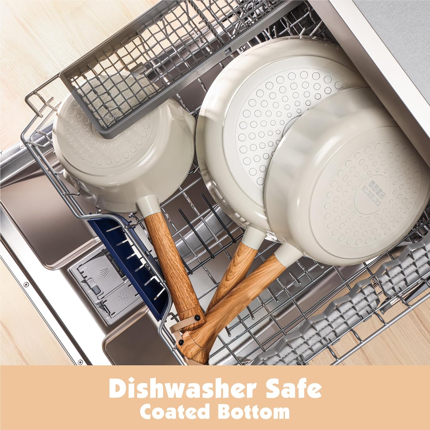 Dishwasher Safe: This ceramic coated non toxic cookware set is dishwasher safe with coated bottom, prevents black residue after washing. Hand wash recommended, simply wipe the pots and pans over with a sponge and warm soapy water.