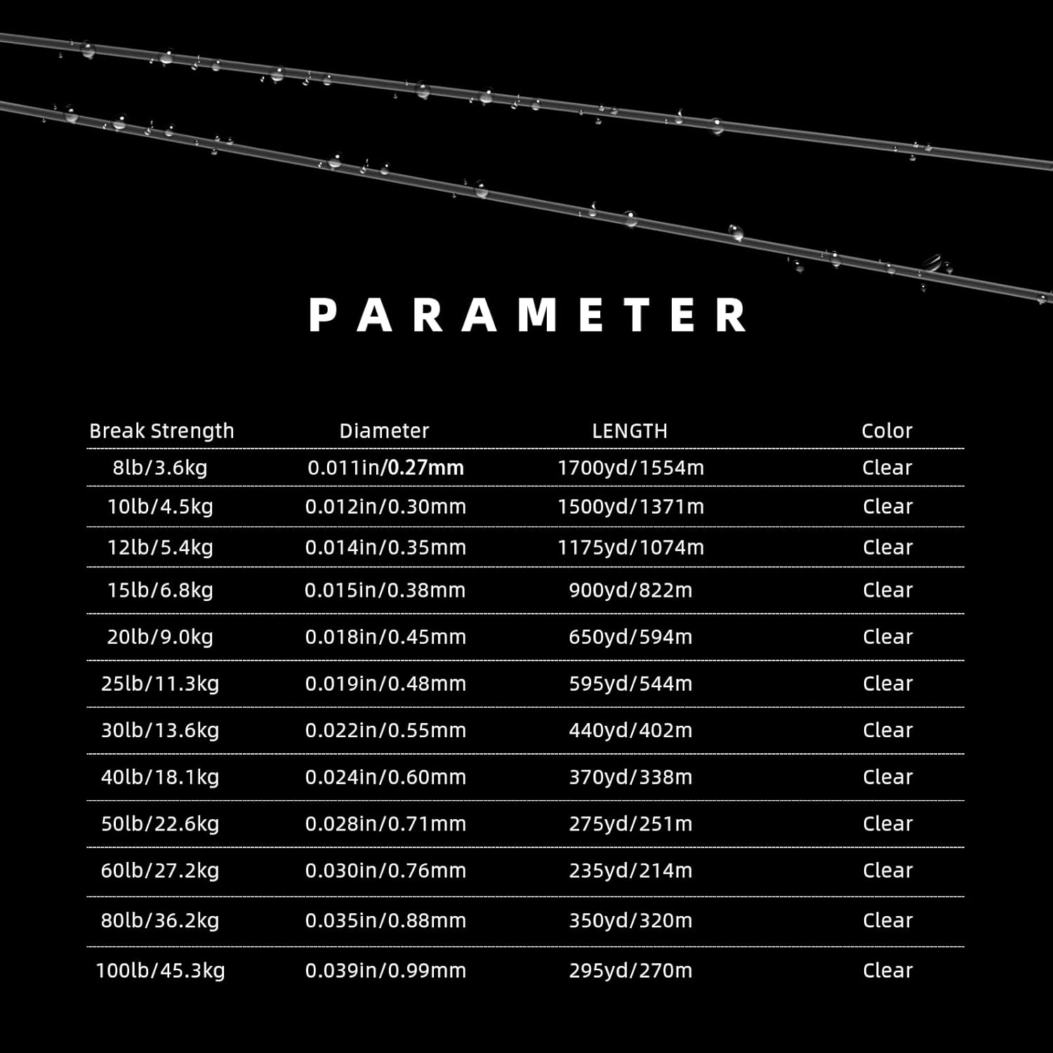Clear lines will remain more invisible than ever and are available for many fishing tactics!
