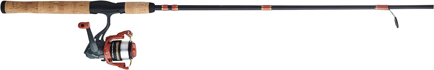 Tubular glass rod with cork handles Graphite spool for strength Pre-spooled with 6lb line 25 size pre-spooled with 4 lb line Convertible Left/Right hand retrieve