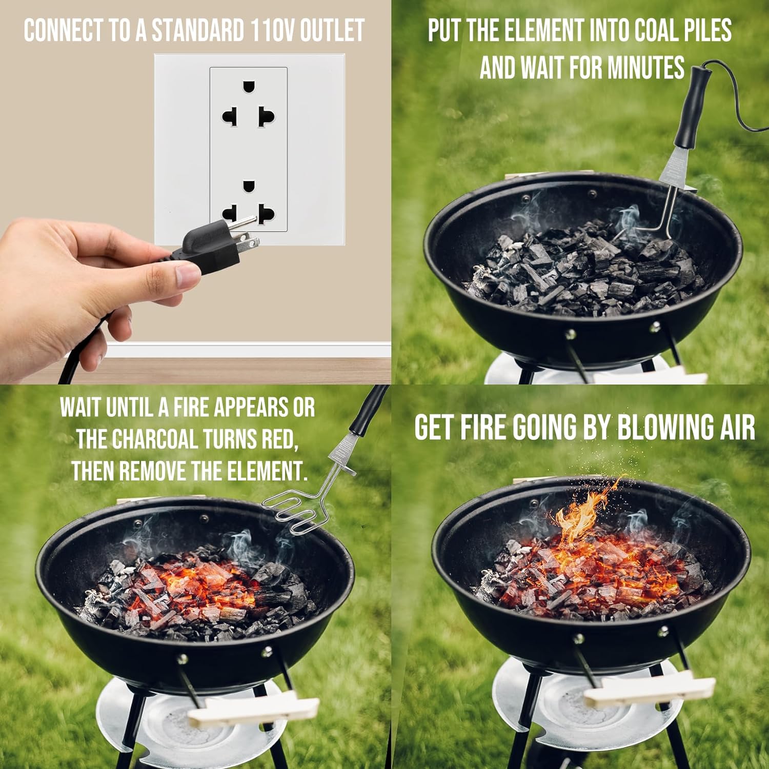 Effortlessly Ignite Your Coals in Minutes – Simply insert the heat element into the coals pile and plug into the standard outlet, wait for the coals to turn red and remove it, allowing you to get your grill or smoker ready to cook in minutes.