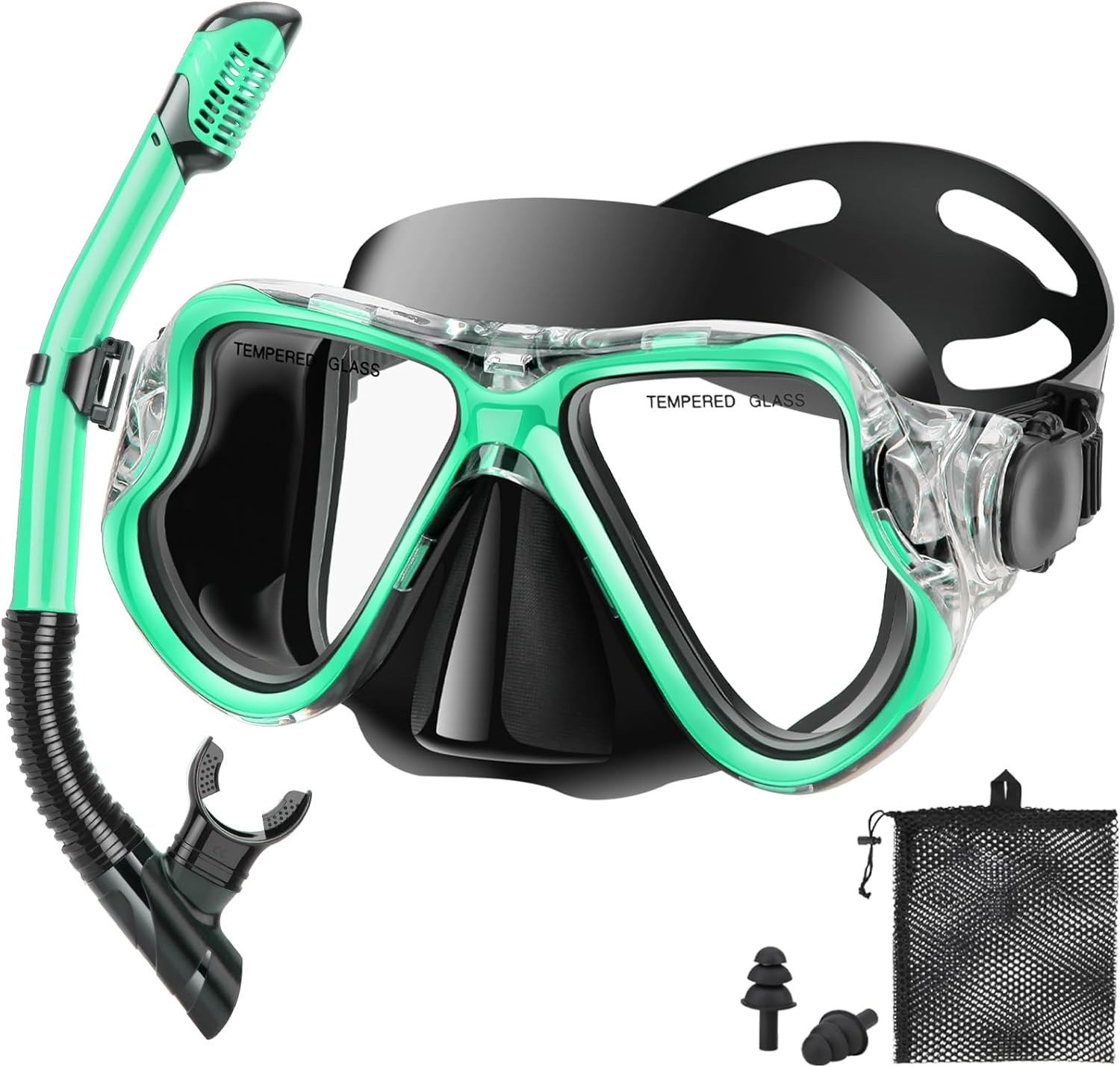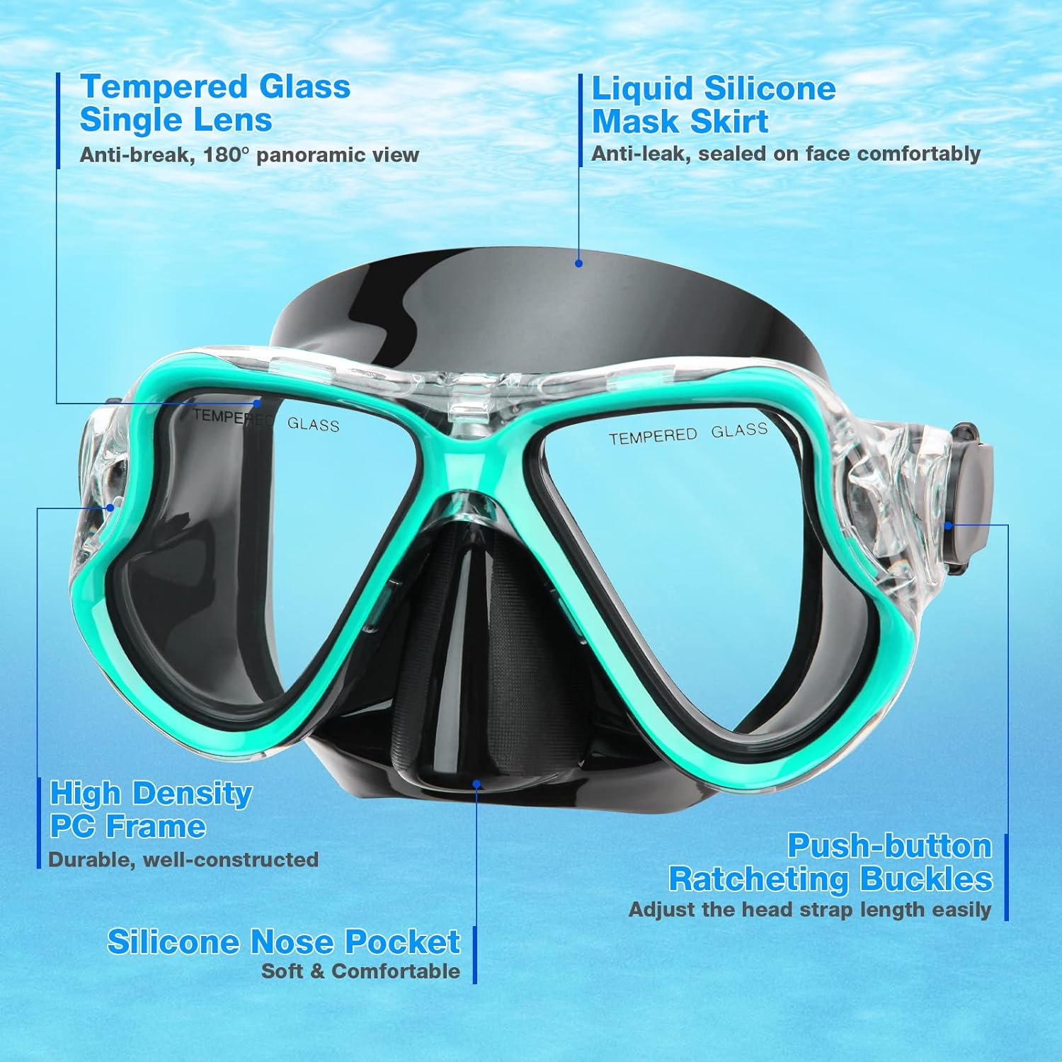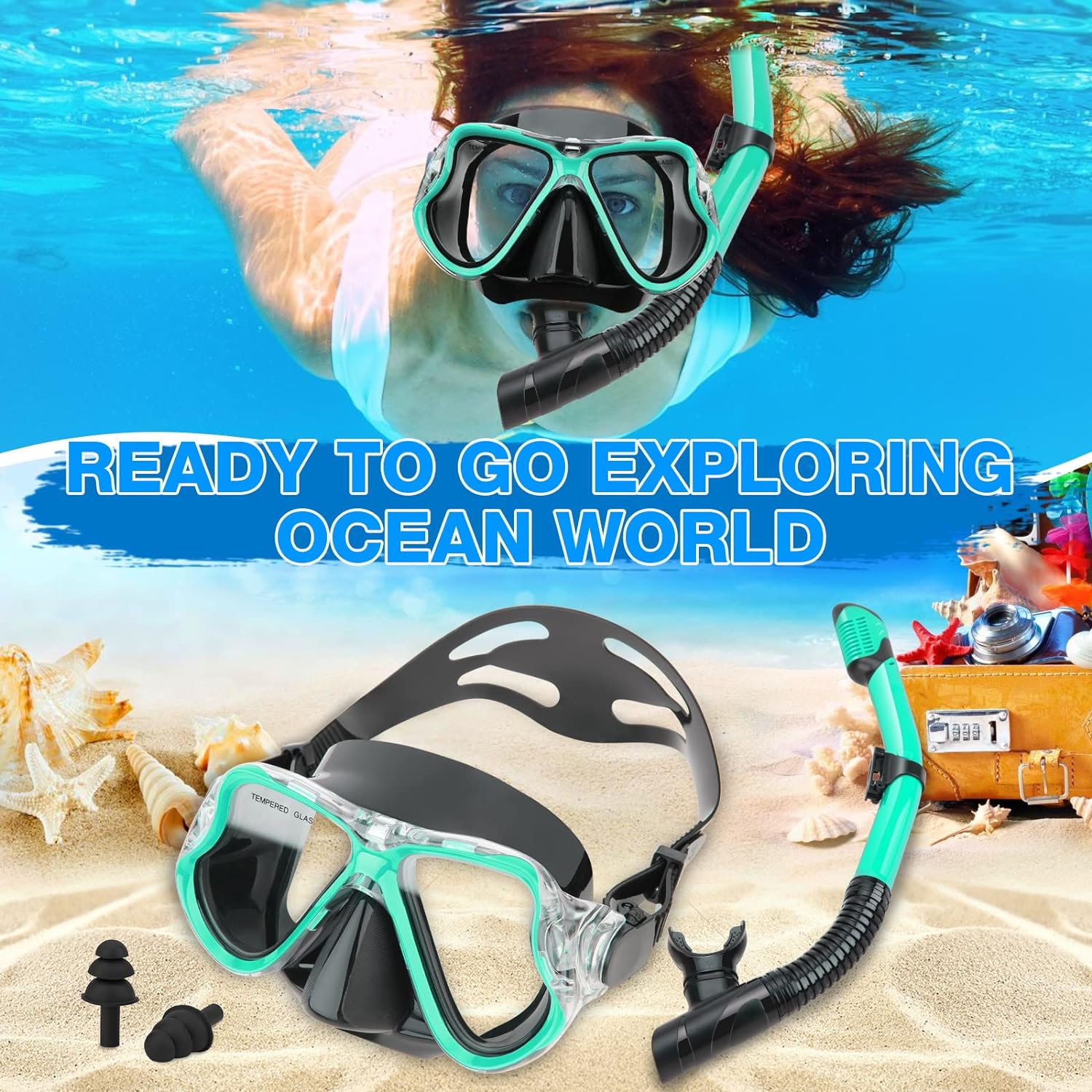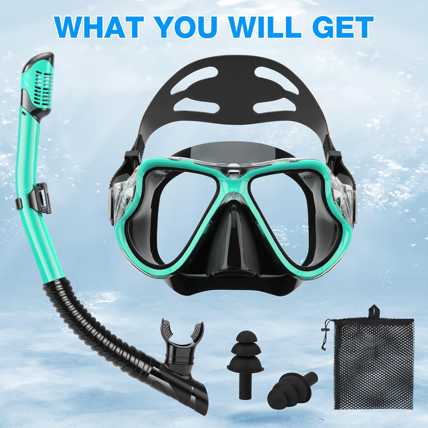 🏊♀️【 Anti-fog Tempered Glass Snorkel Set 】This snorkel goggle features scratch resistant tempered Glass double lens. It is more durable and clearer than normal plastic one. The glass of the diving mask has been specially treated with anti-fog, allowing you have maximum under-water visibility and a crystal clear underwater experience.