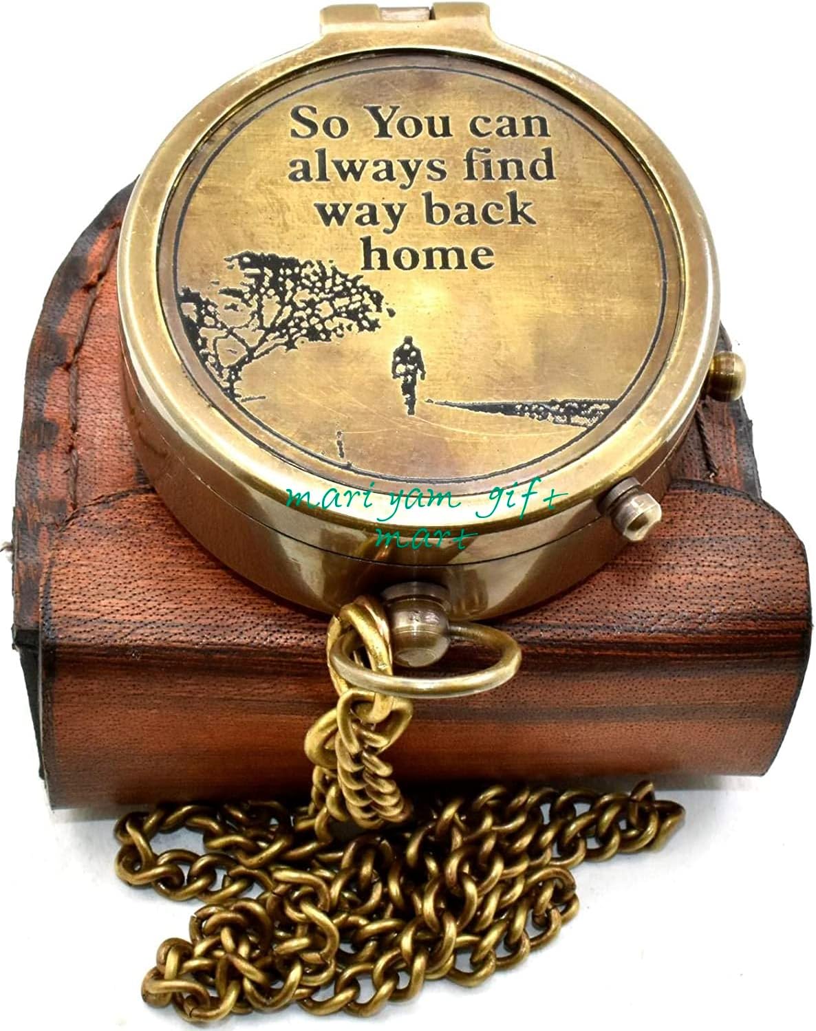 MARIYAM GIFT MART Be Strong and Courageous Quote Engraved Compass with Stamped Leather case. Solid Brass Compass in Antique Finish . ” Be Strong and Courageous Do Not Be Afraid do not be discouraged, for the Lord your God will be with you wherever you go “. . Under the glass cover is a beautiful, detailed copper compass. The high quality jeweled compass needle settles to North very quickly for timely and accurate readings. It has a small lever on the side of the compass that operates a needle lift mechanism to protect the compass bearing. Gift for someone you love. Engraved message of the Compass Be Strong and Courageous Do Not Be Afraid do not be discouraged, for the Lord your God will be with you wherever you go Size-Compass: 50mmX18mm, Leather Case: 3.5×3.5×0.8 inchesFREE Stamped Leather CaseThe leather case stamped with a unique Gift Compass . This Compass is not just beautiful decoration but also 100% working magnetic compass for hiking, boating, camping or any outdoor activity.