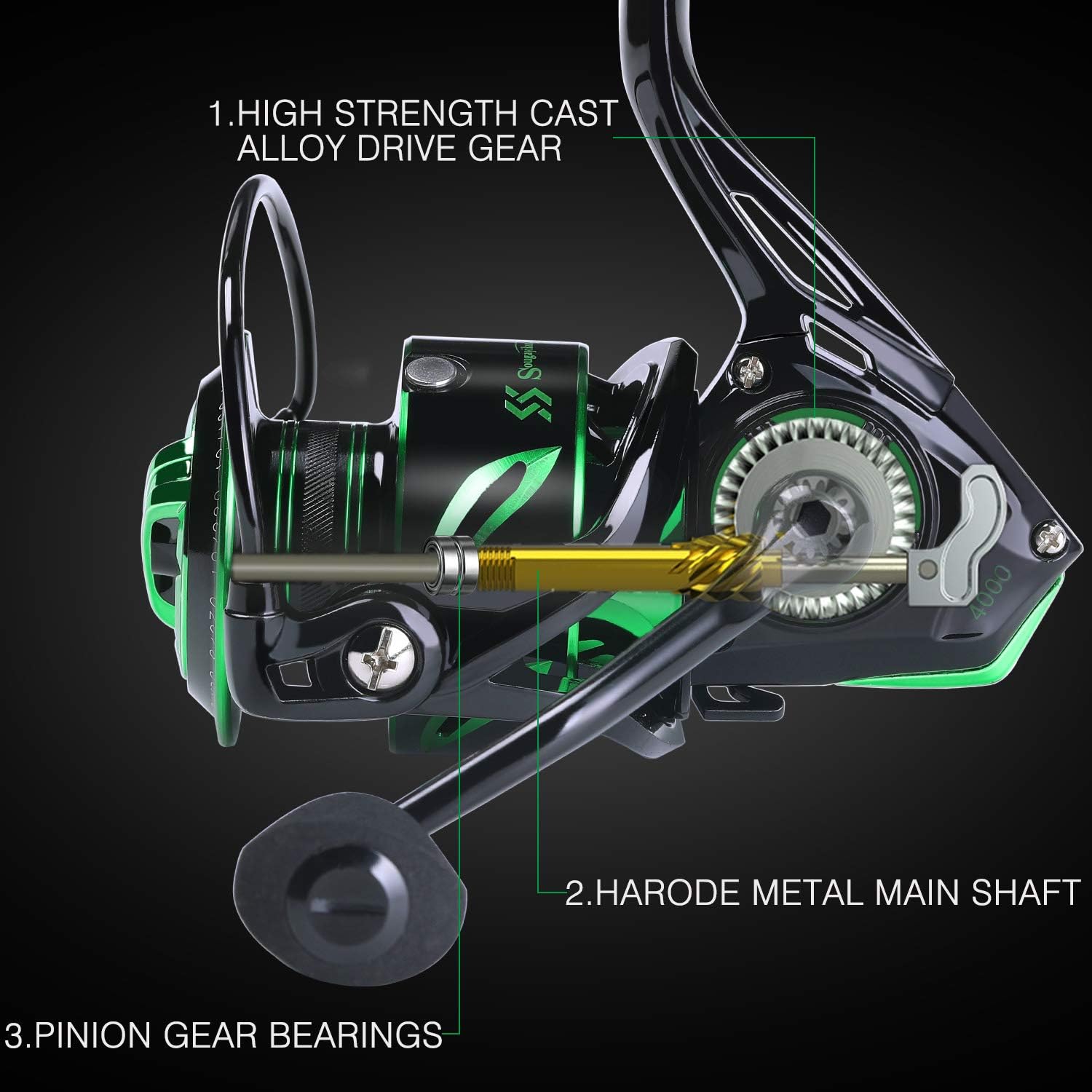 HIGH POWERED – 12 ball bearings + 1 instant anti-reverse bearing,The machined aluminum spool prevents your line from slipping and houses a carbon fiber drag system that delivers consistent pressure. Weight is further reduced with an ergonomic EVA handle knob.