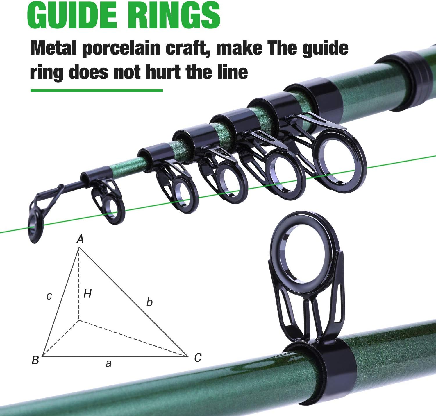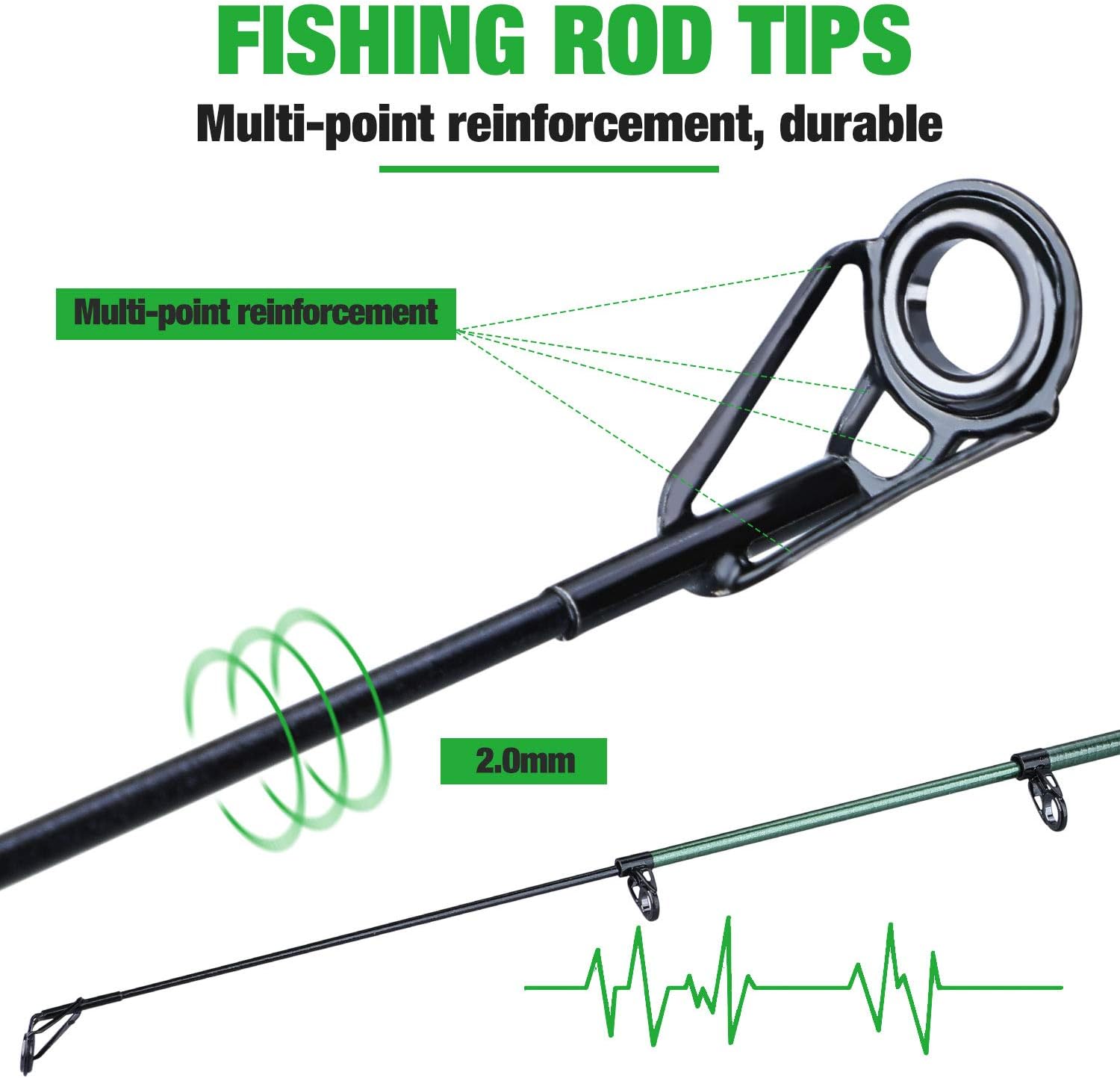 Fashion Appearance: The most popular color fishing rods this year?well-made of 24T carbon fiber and stainless steel hooded reel seat, possessing resistance to seawater corrosion. Stainless steel line guide ring constructed with ceramic ring enhances better heat dissipation.EVA handle is soft and comfortable to hold.