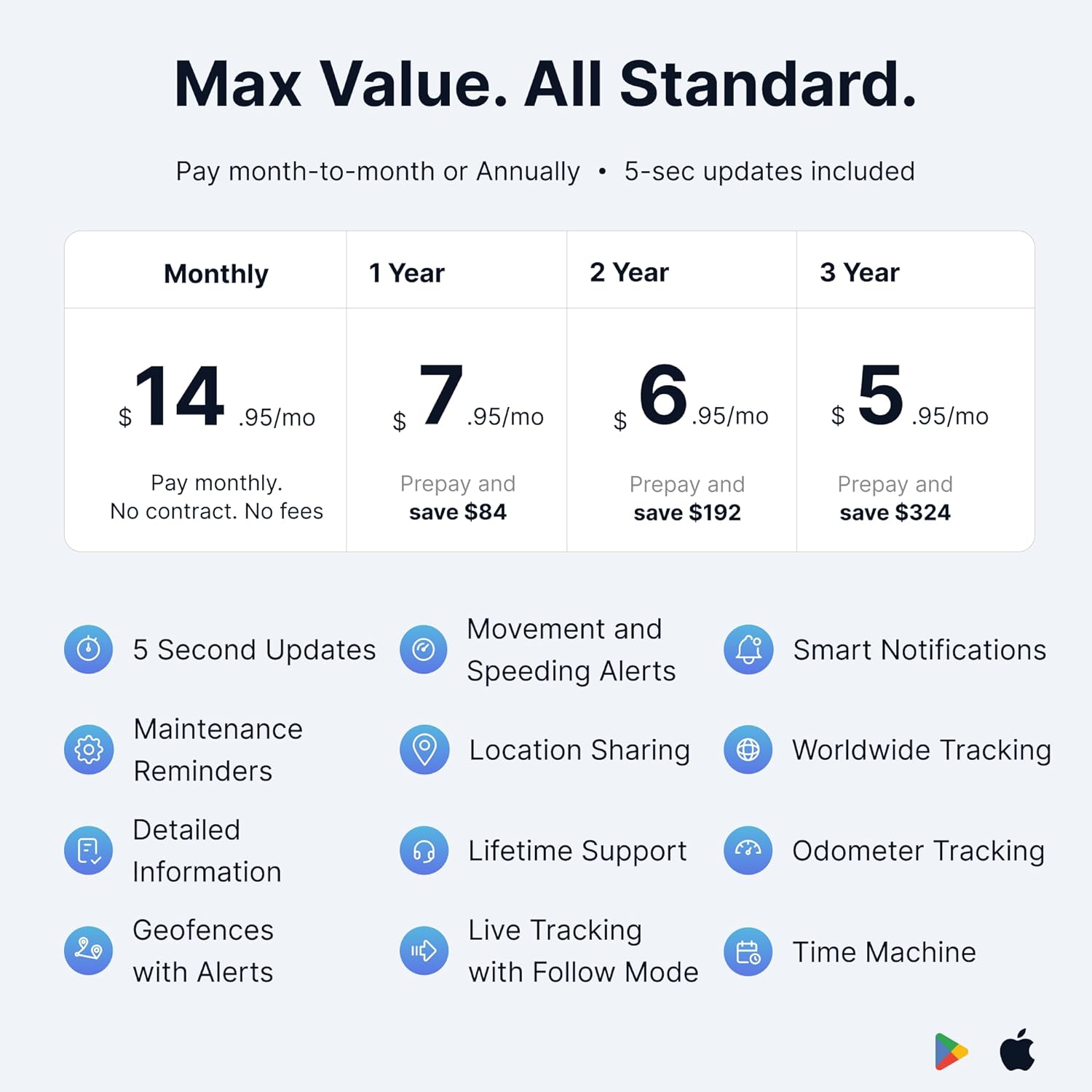 RELIABLE PROTECTION – Get Alerts via the mobile app or desktop website with SMS text, Email, and Push notifications. Create customized boundaries, manage users, and get real time vehicle information and notifications every 5 seconds for as low as $7.95/month (USD). Get free 24/7 support on GPS trackers with an active subscription.