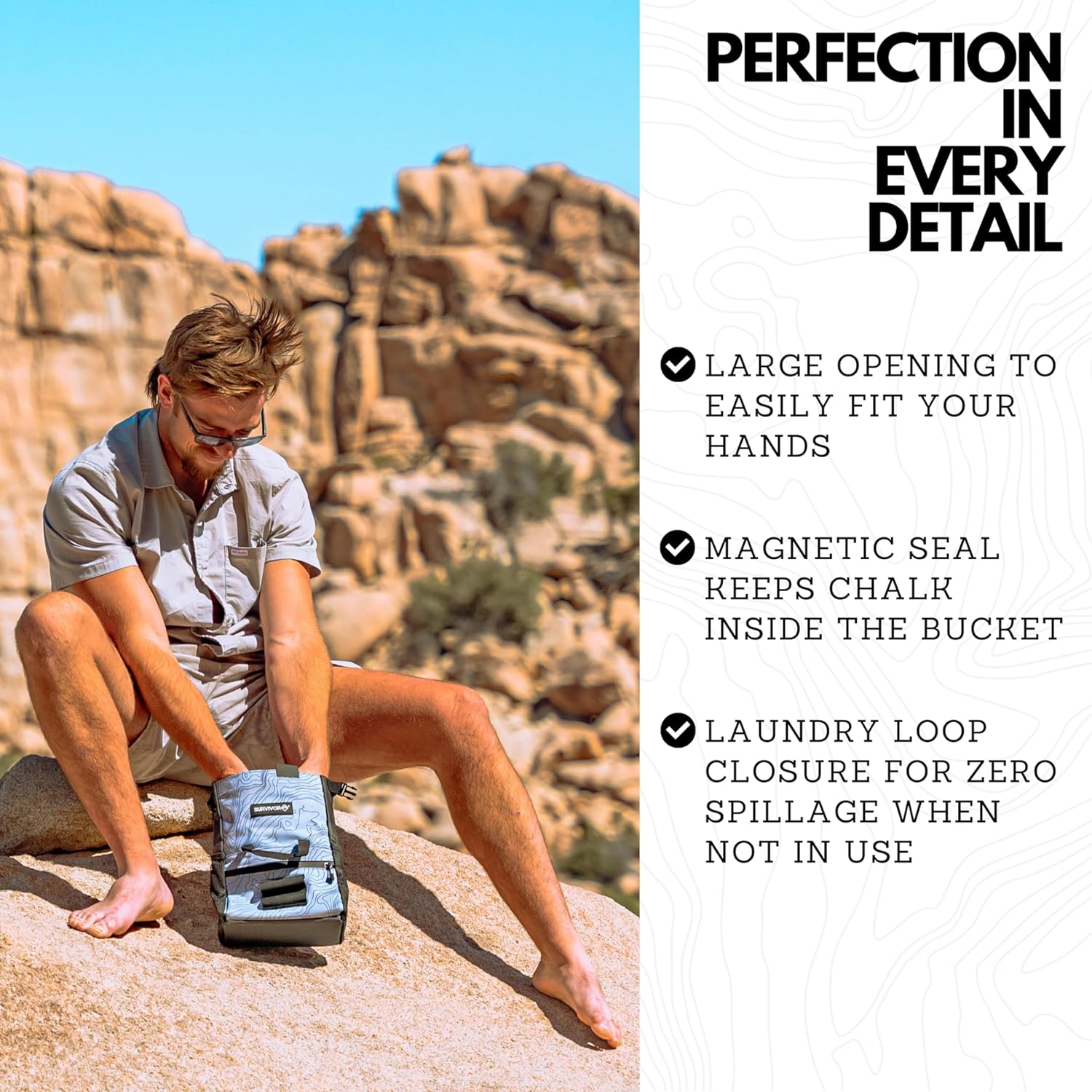 ✔️LOCK & ROLL – Our Mag-Lock and Roll Closure systems completely eliminate gym chalk leakage out of the climbing chalk bucket. Shut the bag with our magnets, roll it down, clasp it into a circle using the buckles, and get ready to pass the poof test with flying colors.