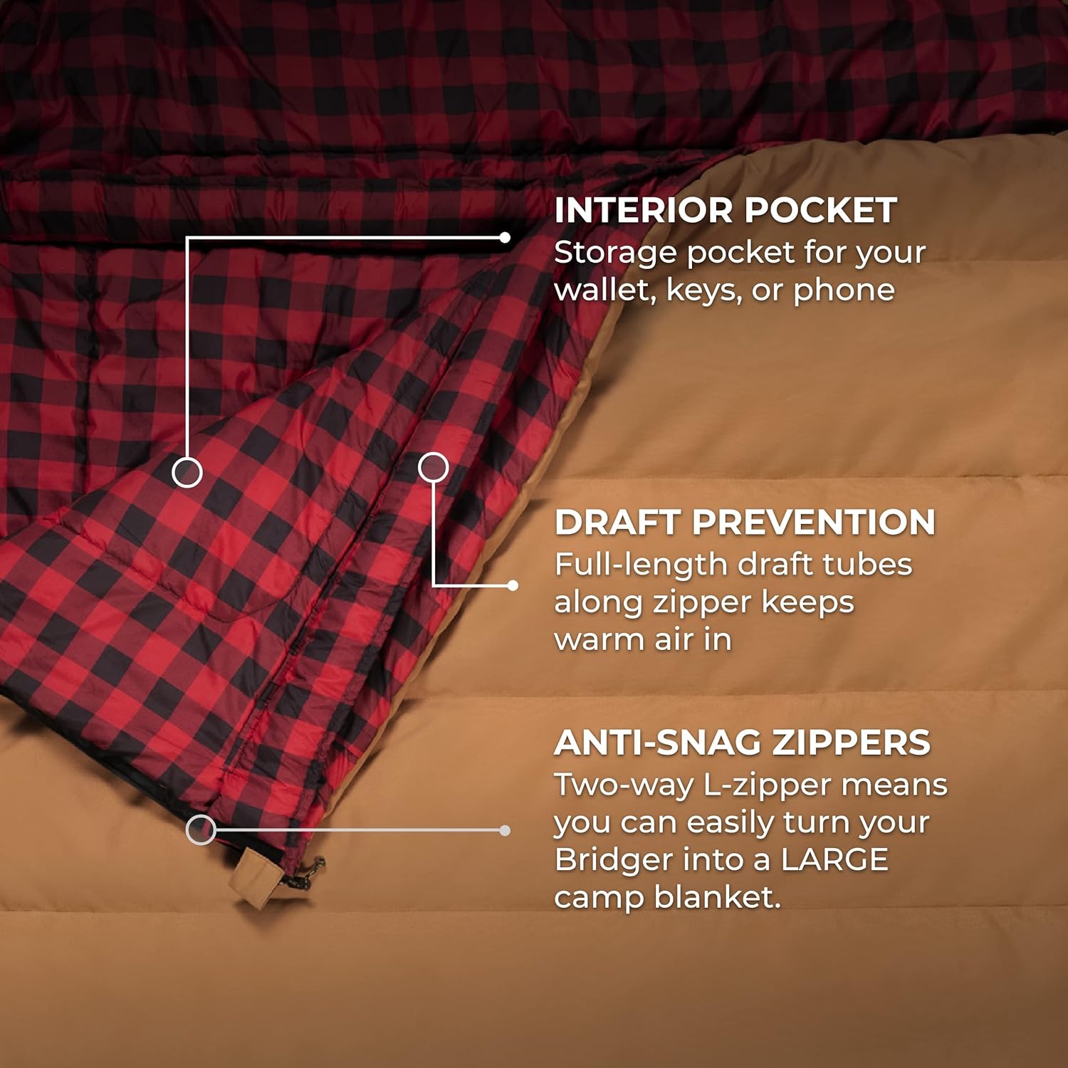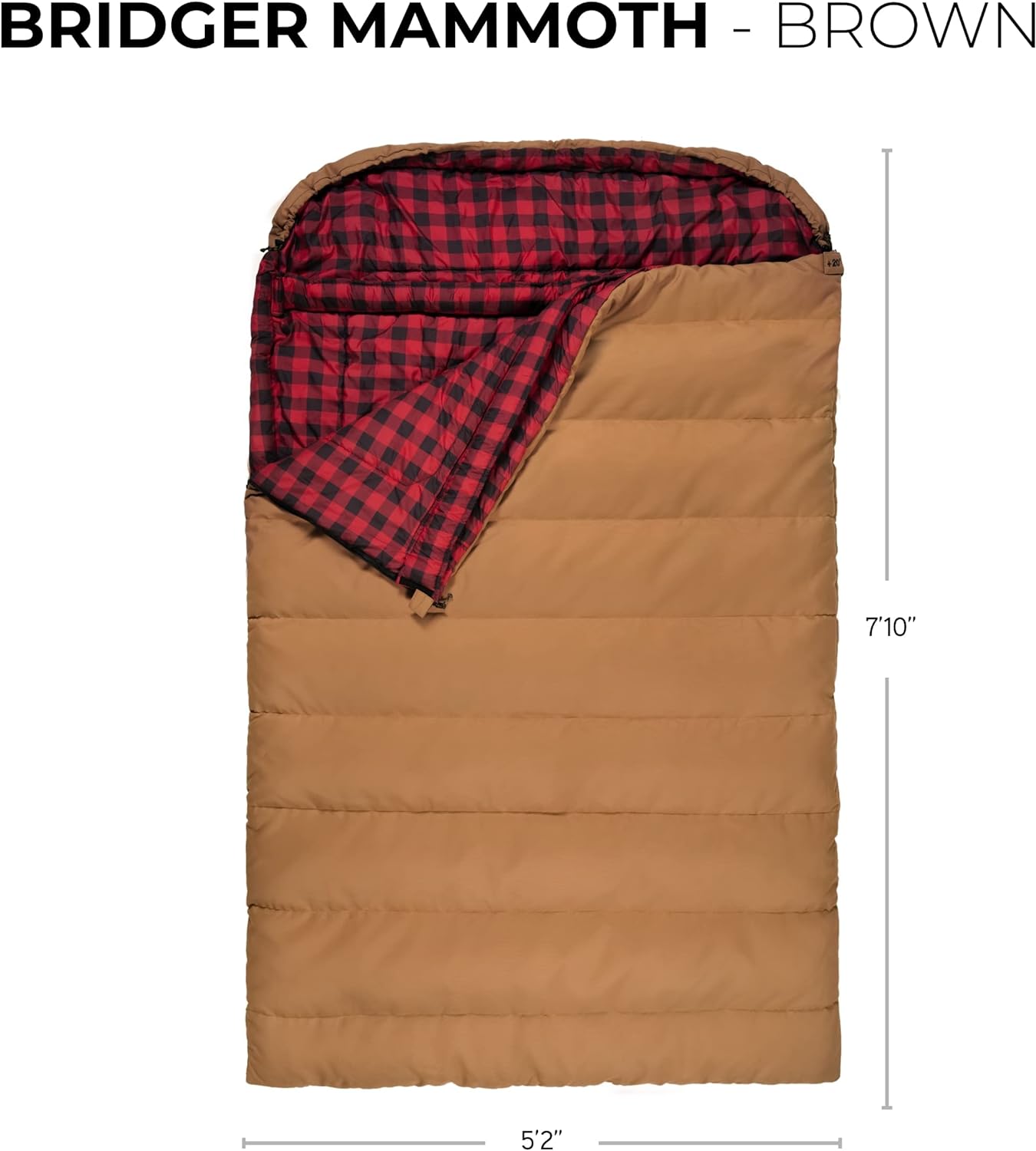 The Mammoth Double Sleeping Bag is the perfect two-person sleep system when you’re looking to enjoy the outdoors together. The soft-to-the-touch liner, draft tubes, and mummy-style hood make it just right for snuggling. Simply bring one sleeping bag to eliminate the hassle of packing two separate sleeping bags and zipping them together. It’s thoughtfully designed so you’ll never want to leave the comfort of your sleeping bag. Car camping double sleeping bag Rated for cold temperatures Sturdy taffeta shell Soft-to-the-touch liner Mummy style hood Double-layer construction entire width and length of bag Full-width baffles and full-length zipper and shoulder draft tubes Sturdy anti-snag two-way zippers with metal pulls Unzip completely to make two camp comforters Lifetime Warranty