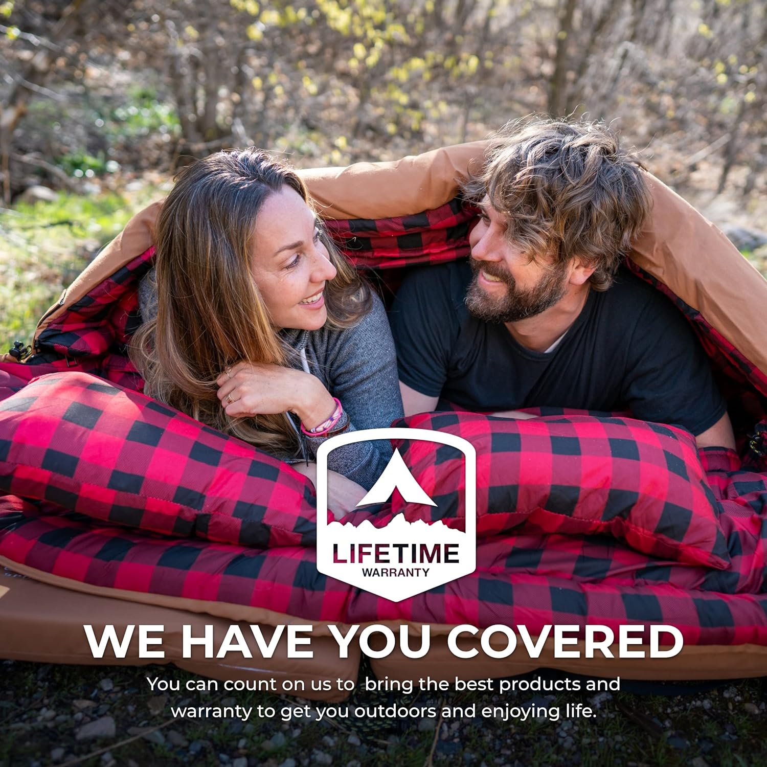 FIT FOR A KING AND QUEEN: With a spacious 94×62 inches (239×157 cm) size, our double camping sleeping bags are larger than a queen-sized mattress, giving you plenty of room to spread out or snuggle up with the Family. For Adults and kids