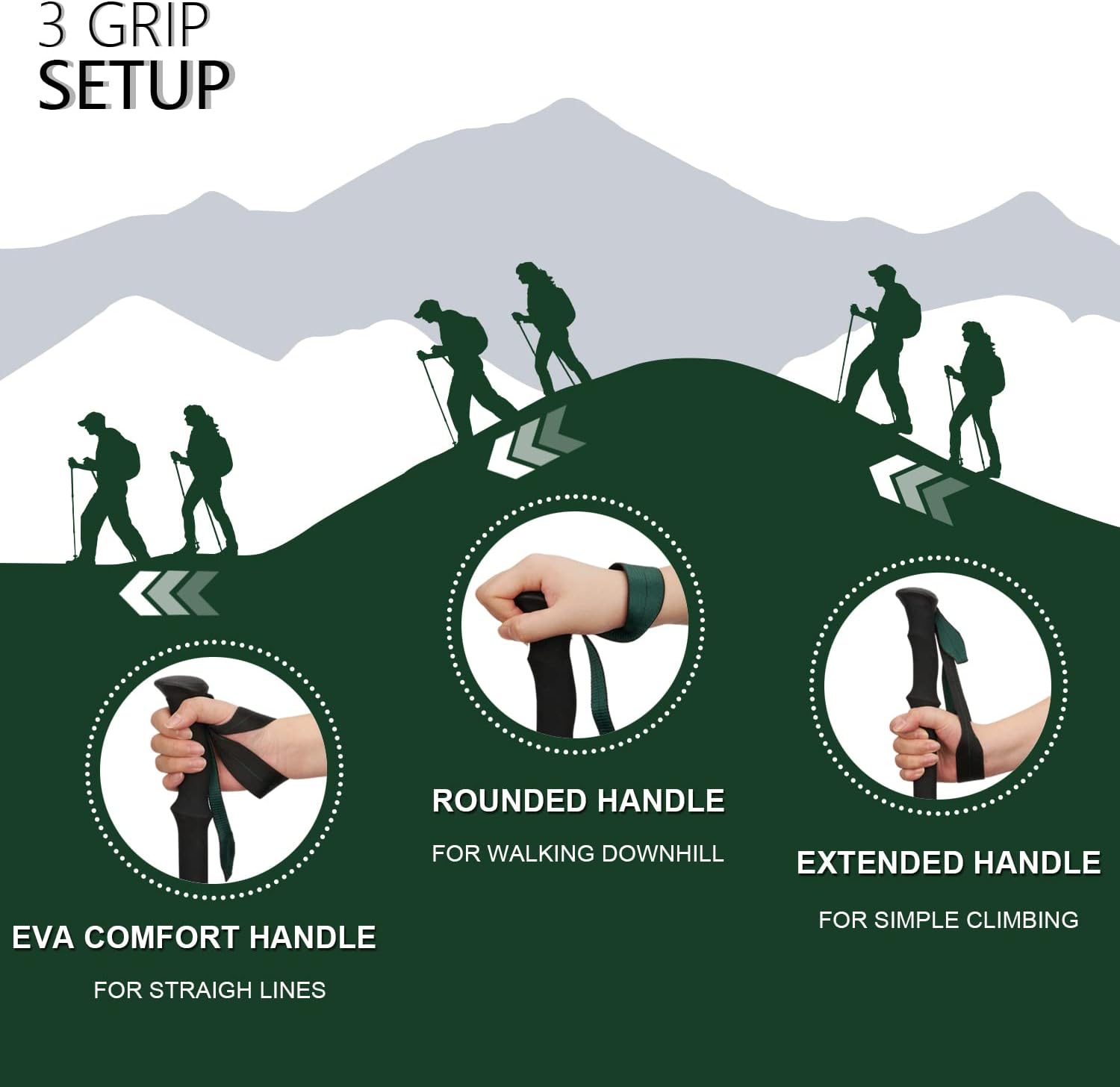 Details Matter in Success: Extended ergonomic EVA foam handle precisely accommodates your palm, absorbs sweat, anti-slip, and keeps your hands comfortable throughout your hike. It offers you more options in switchbacks or abrupt changes in terrain. The adjustable wrist straps allow you to release your grip on the handle, which in turn reduces possible soreness to your palms.