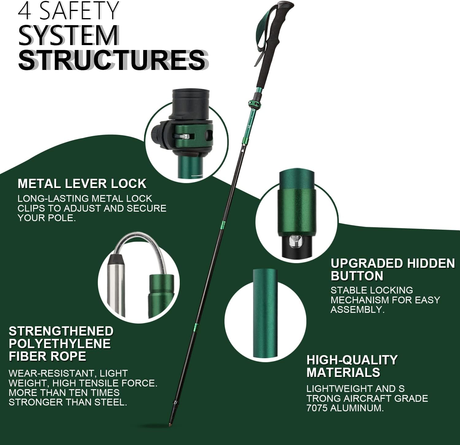 Durable & Worry-free: TheFitLife hiking poles are made of lightweight 7075 aluminum alloy which is commonly used in aviation. It withstands pressure and shock better, in addition, it helps reduce back and knee joint stress. Metal lever lock and hidden button locking mechanism make it stable and secure.