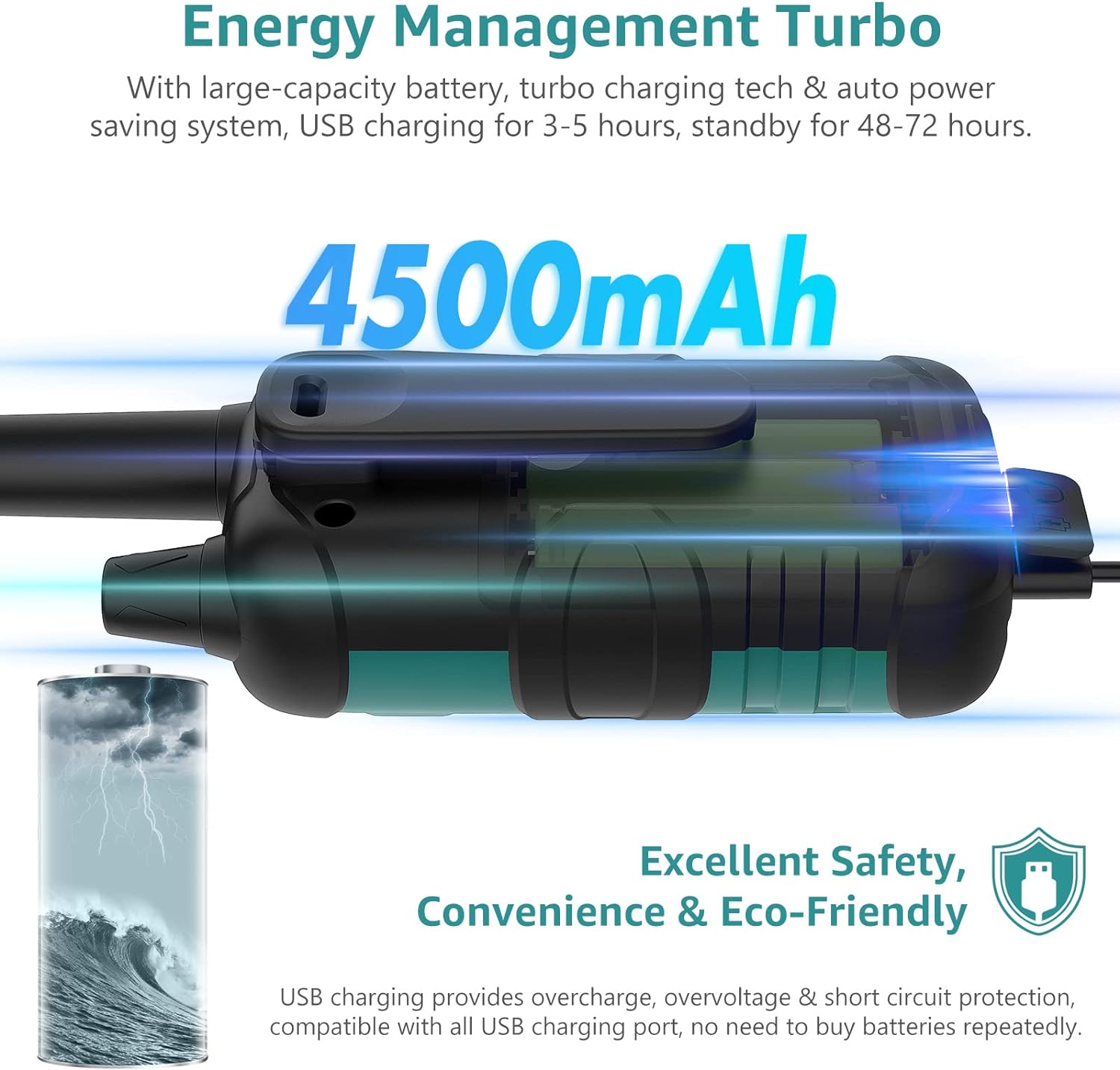 【Energy Management Turbo】:Experience the brilliance of a large-capacity battery with turbo charging tech. The 4500mAh rechargeable battery has high safety and long life, no more frequent charges or buying batteries, save the environment and your wallet. Enjoy the convenience of original USB fast charger with 48-72 hours of standby on a mere 3-5 hour charge, USB compatibility ensures you can charge anywhere, anytime, such as charged by car, laptop or power bank, etc