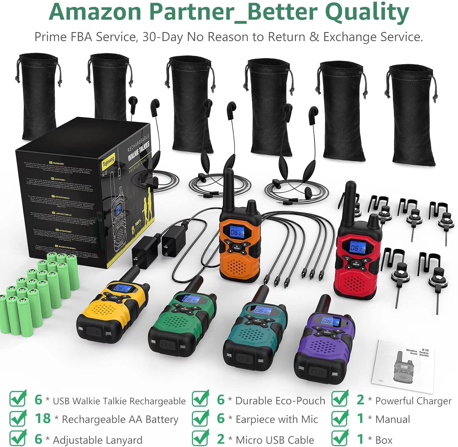 √ 6 * USB rechargeable walkie talkies designed for team & family