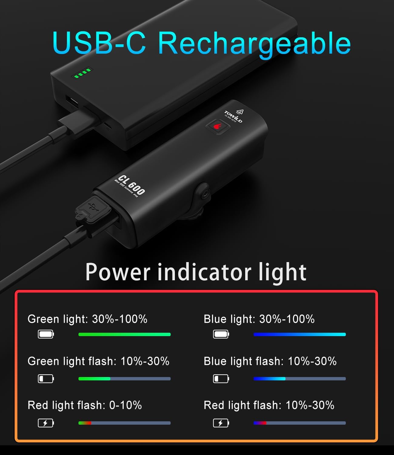 OVERHEAT PROTECTION AND TYPE-C CHARGING -Automatically reduces brightness when the bike light overheats,which makes it more sturdy and last longer.