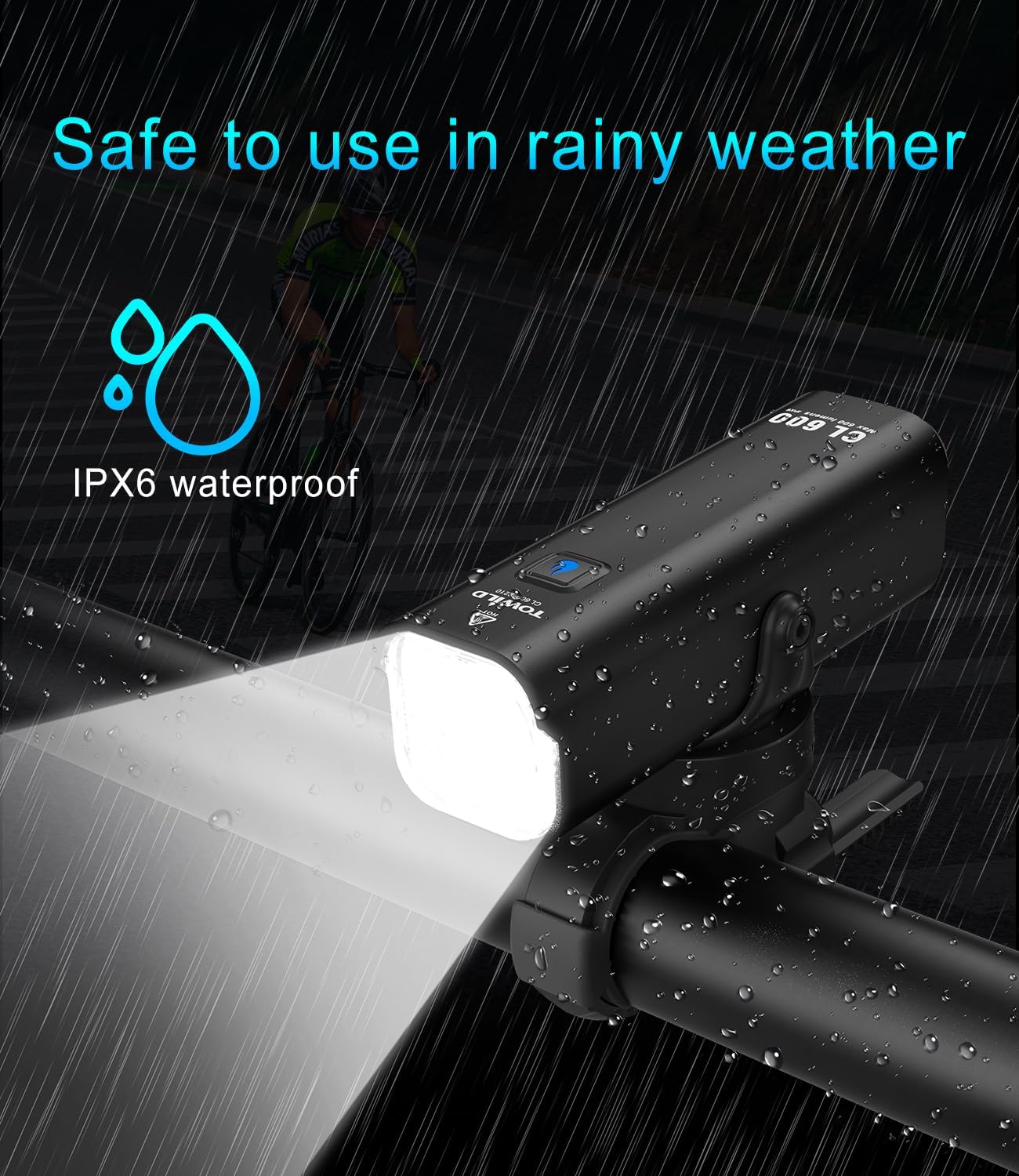 INDUSTRIAL DESIGN -The aircraft grade aluminum body with type 3 anodizing give this bike light a very tough and reliable construction,which greatly improves the rigidity and anti-corrosion.IPX6 Waterproof makes the bike light survive even the heaviest downpour.