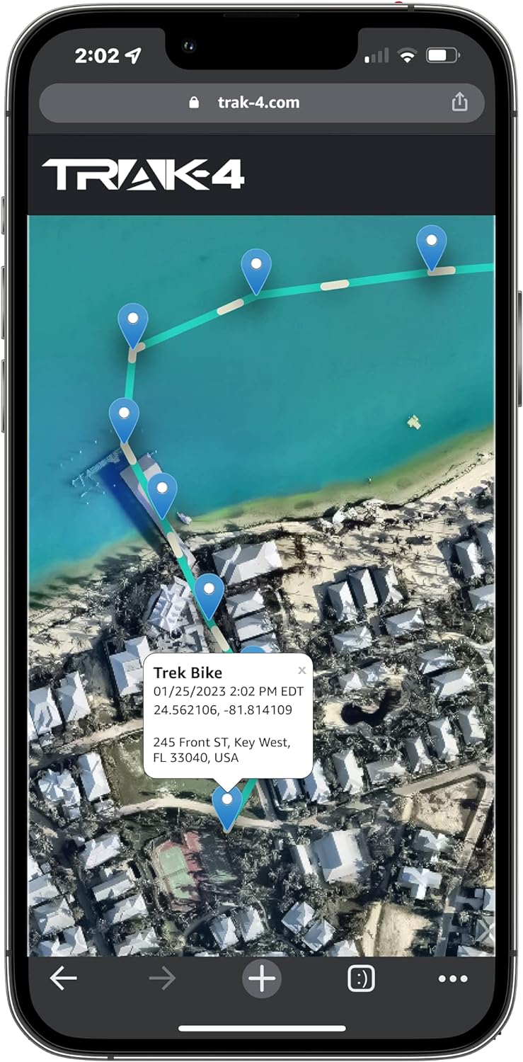 Ping Rates – Choose in-motion ping rates from 1-minute to 1-hour. Daily Check-in – Your Trak-4 will check-in once daily even when not moving.Expert Mapping – Track multiple units on the same map.Map History – Animated ant-trails indicate the direction of travel of your Trak-4 over time.Unlimited Sharing – Share your device location in real-time with family, friends, and business associates.No GPS? No problem – Trak-4 will use WIFI and Cell geolocation when a GPS signal is blocked (inside garages, buildings, etc). WIFI geolocation provides great positional accuracy in populated areas.