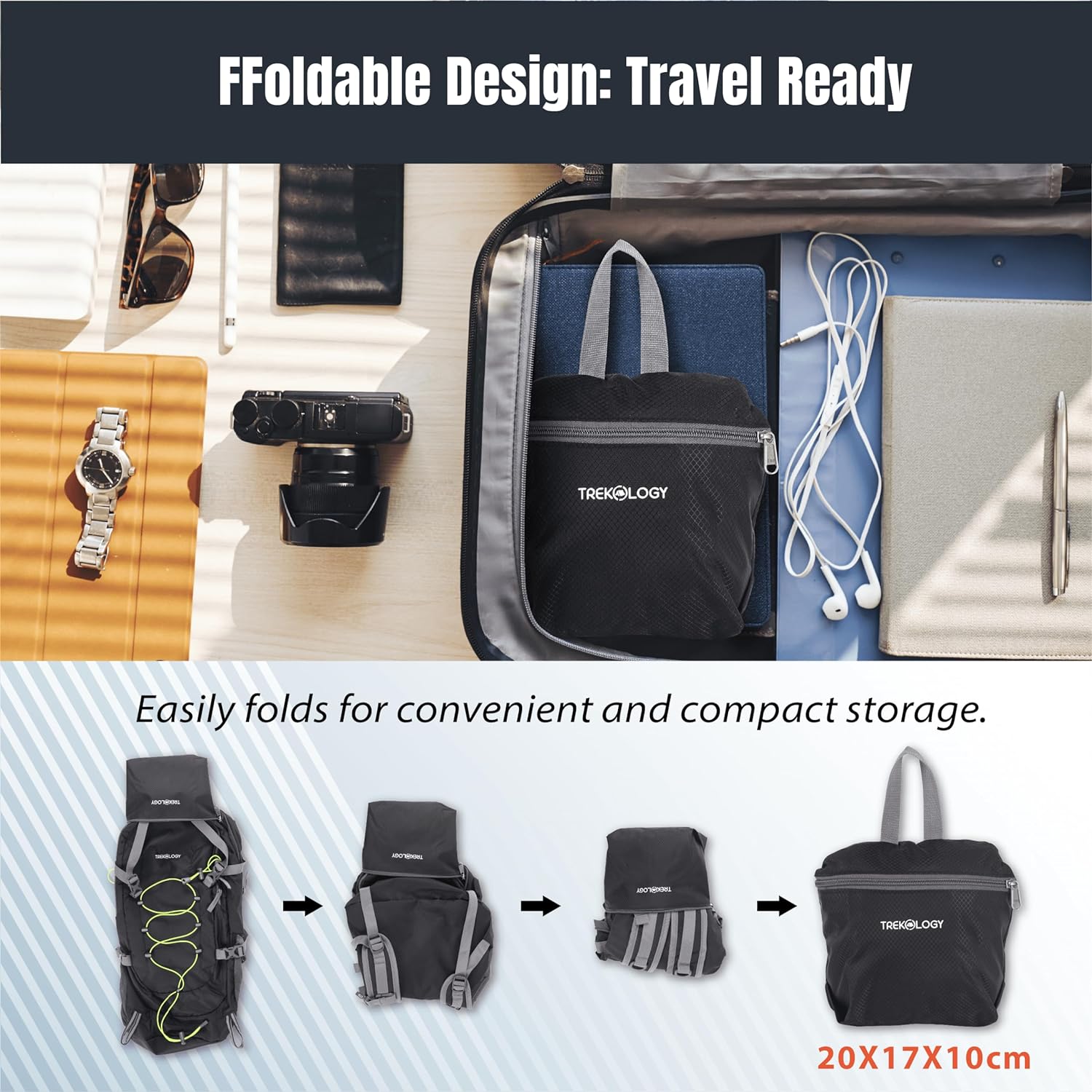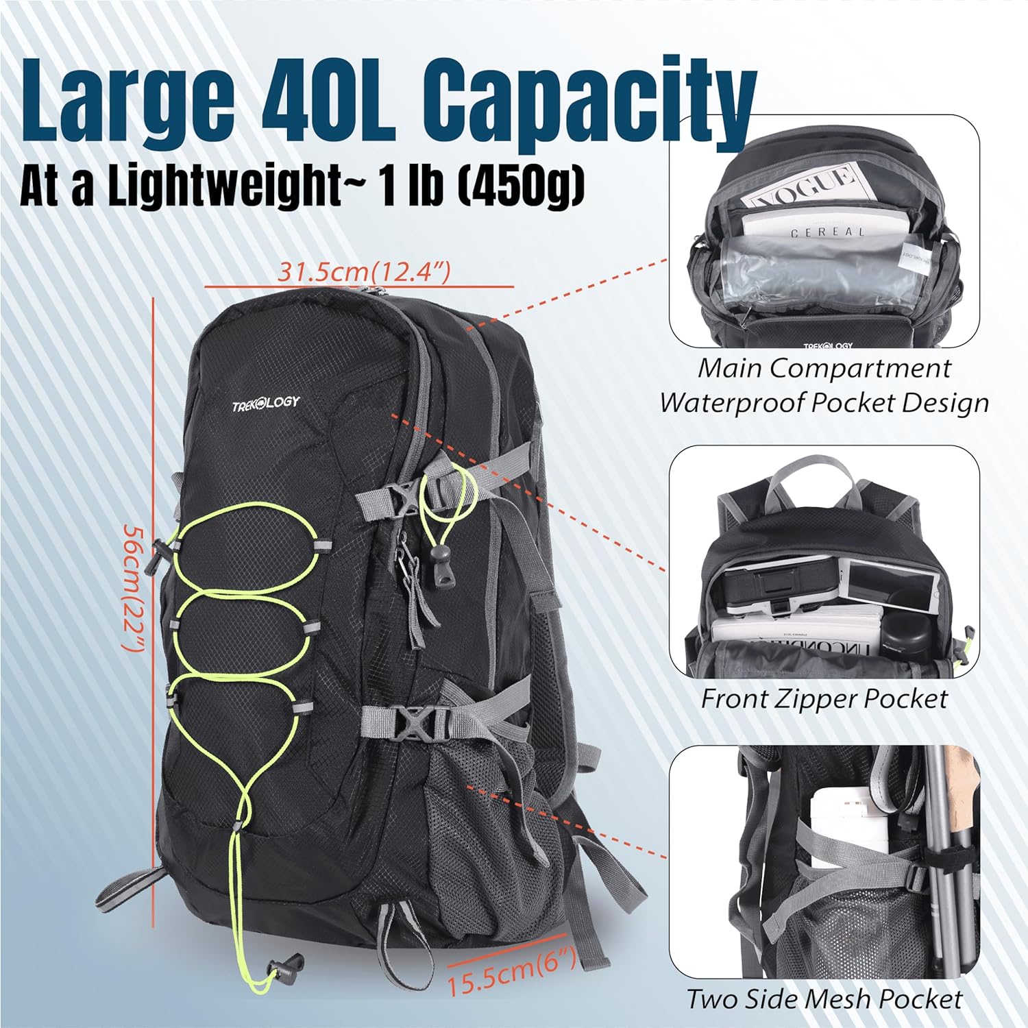 Ultra-Lightweight Design: Weighing a mere 452 g/1 lb, this lightweight backpack is effortlessly portable, easily transforming into a compact size by folding up into a storage pocket (25*20.5 cm/9.8” * 8”) for on-the-go adventures.