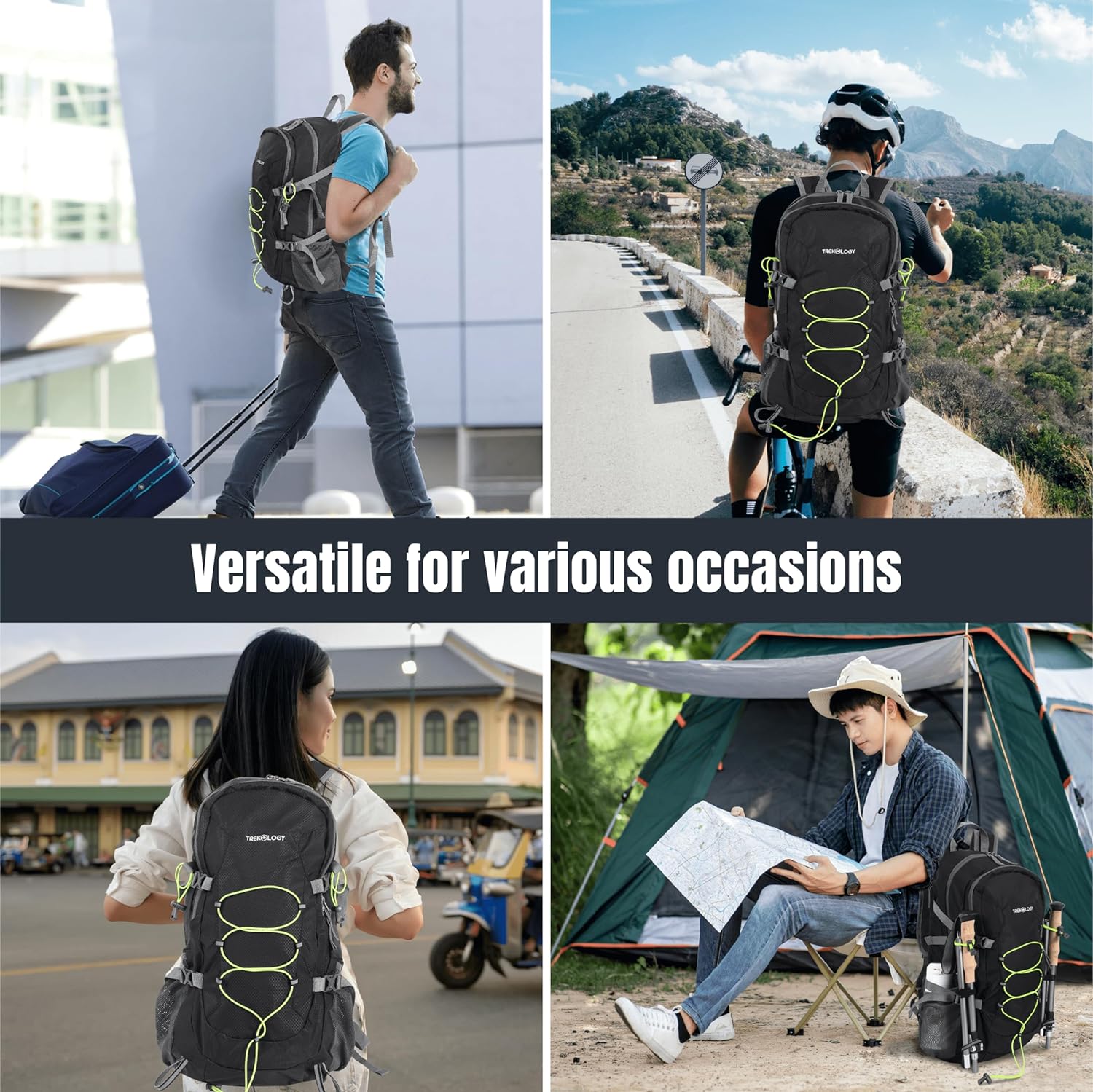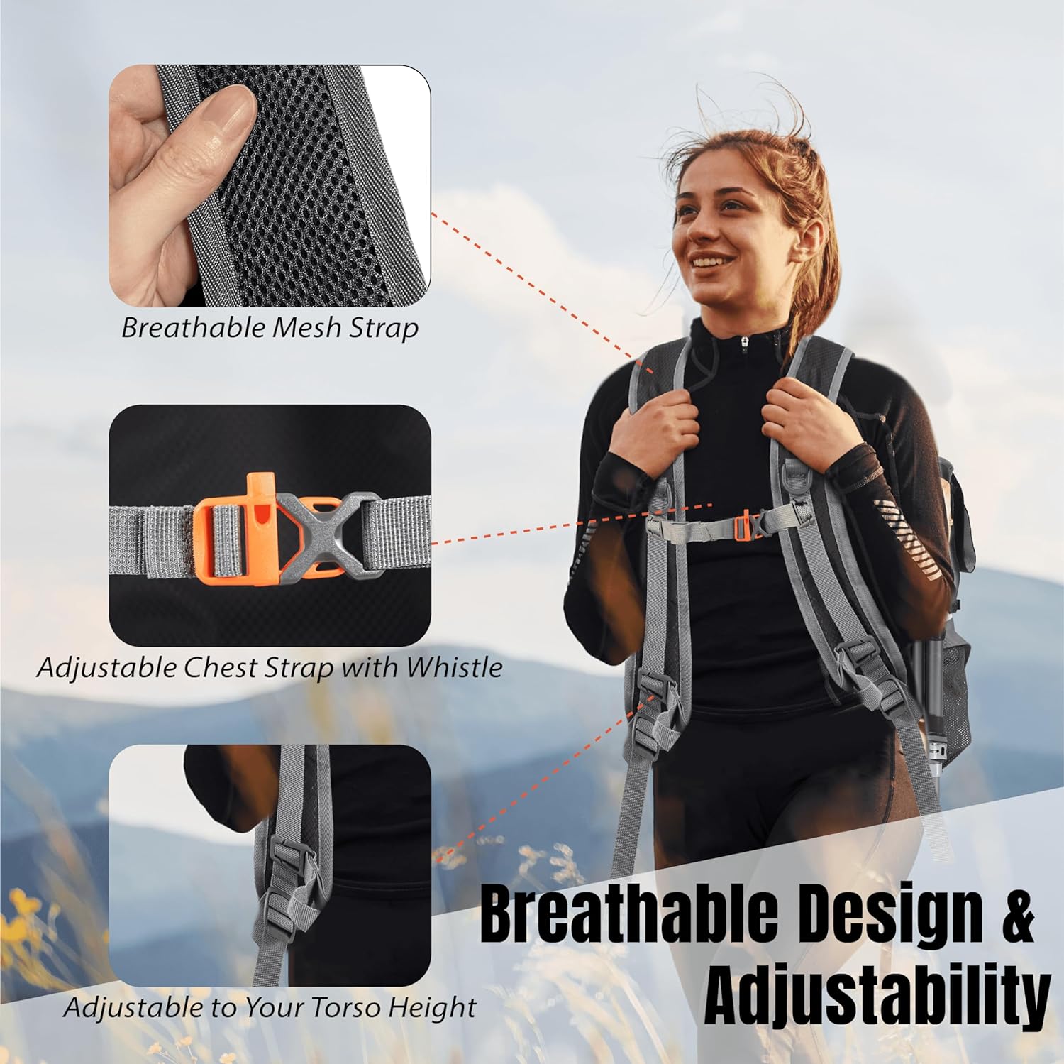 Robust Security Assurance: With a reliable zipper for guaranteed security, water-resistant properties, and reflective ropes with latching loops to enhance reliability, this lightweight hiking backpack ensures safety for both day and night adventures.