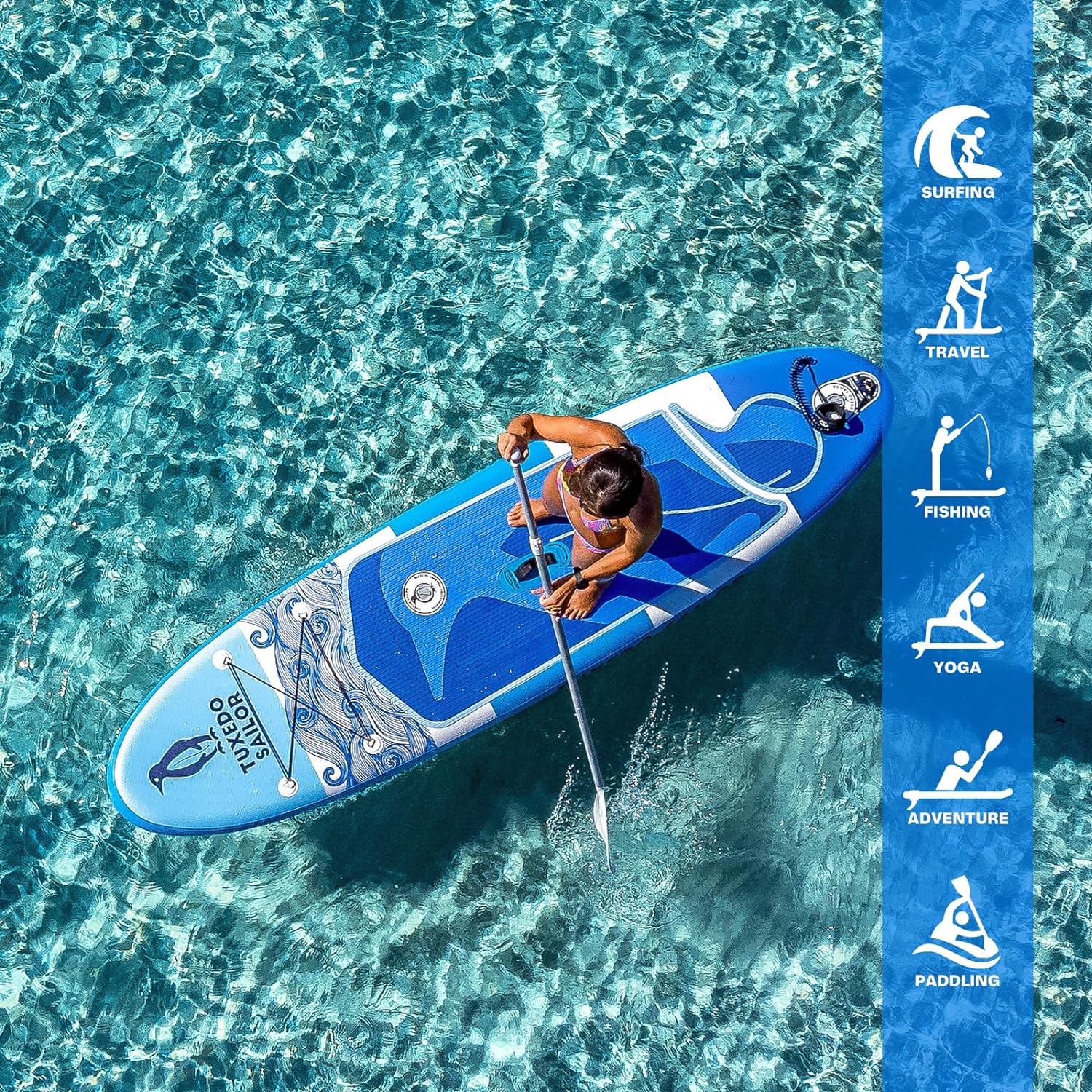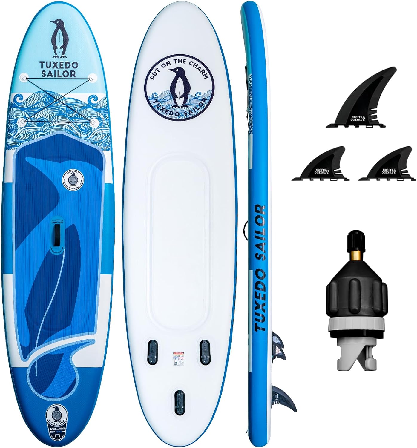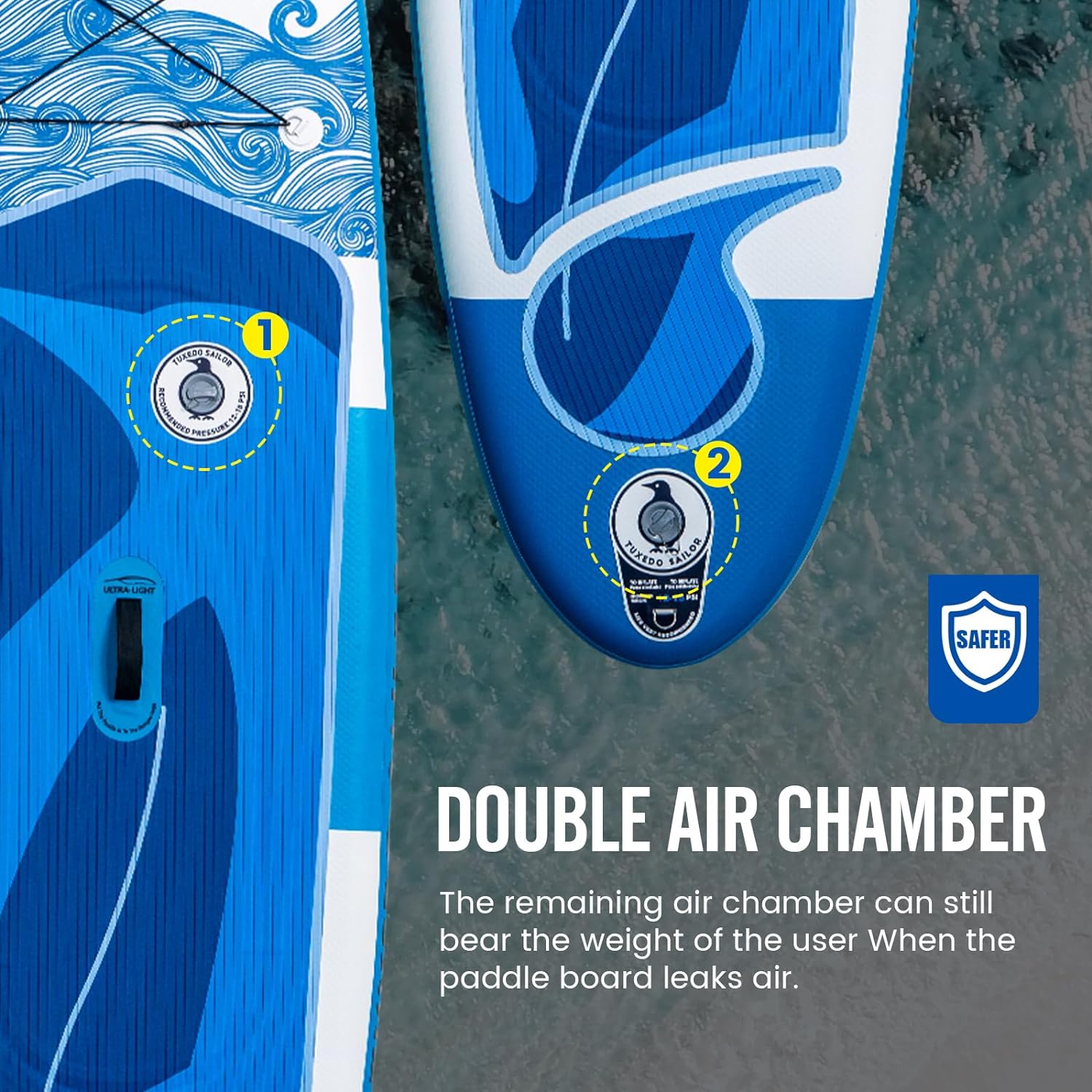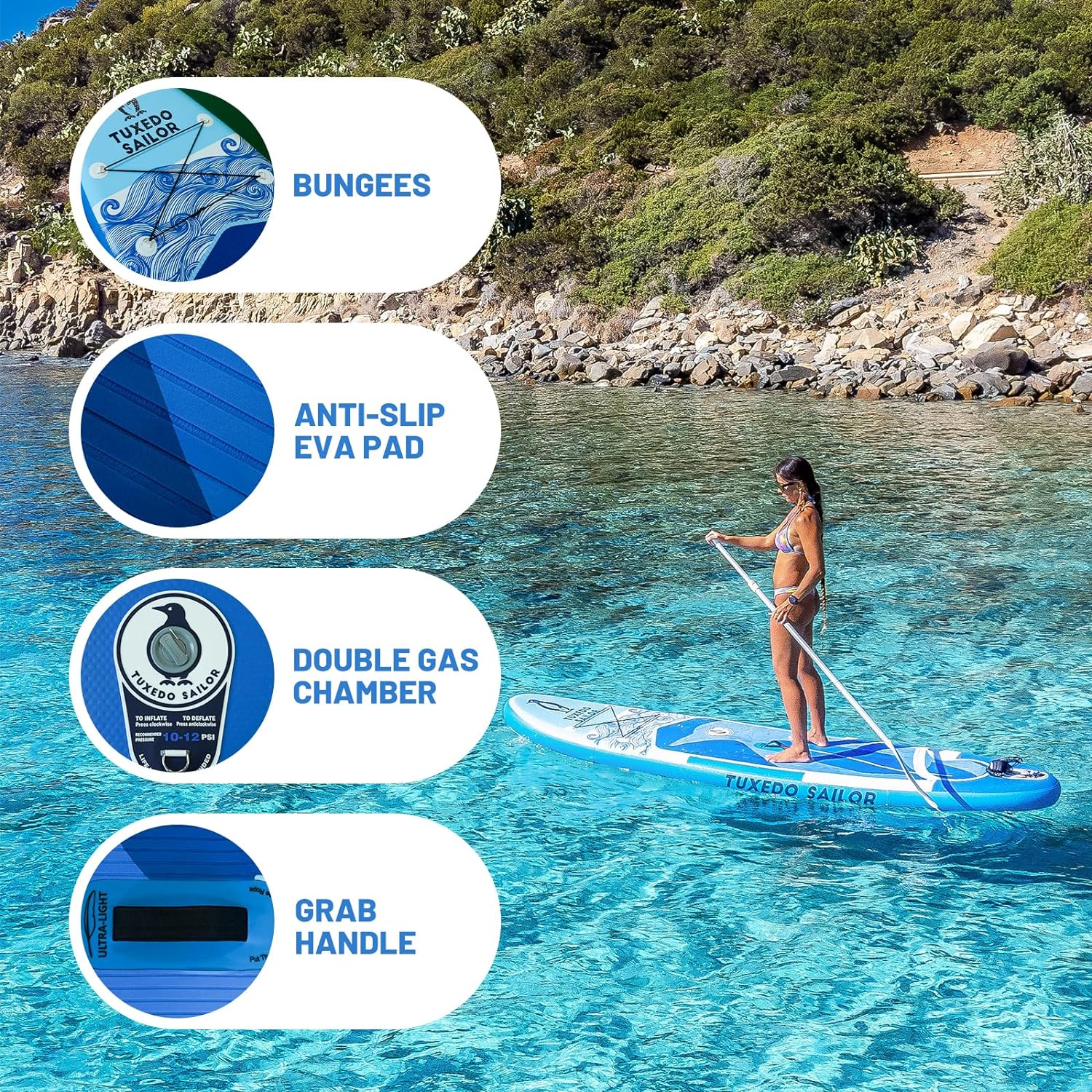 【Natural Shape Design】The Tuxedo Sailor paddleboard uses a cool navy blue and wave pattern, carefully printed using spray-printing technology, which is perfect for those who love water sports in terms of look and feel, and is also the best companion for your photo shoot. The refreshing and natural design makes this stand-up paddleboard popular among people of all ages.