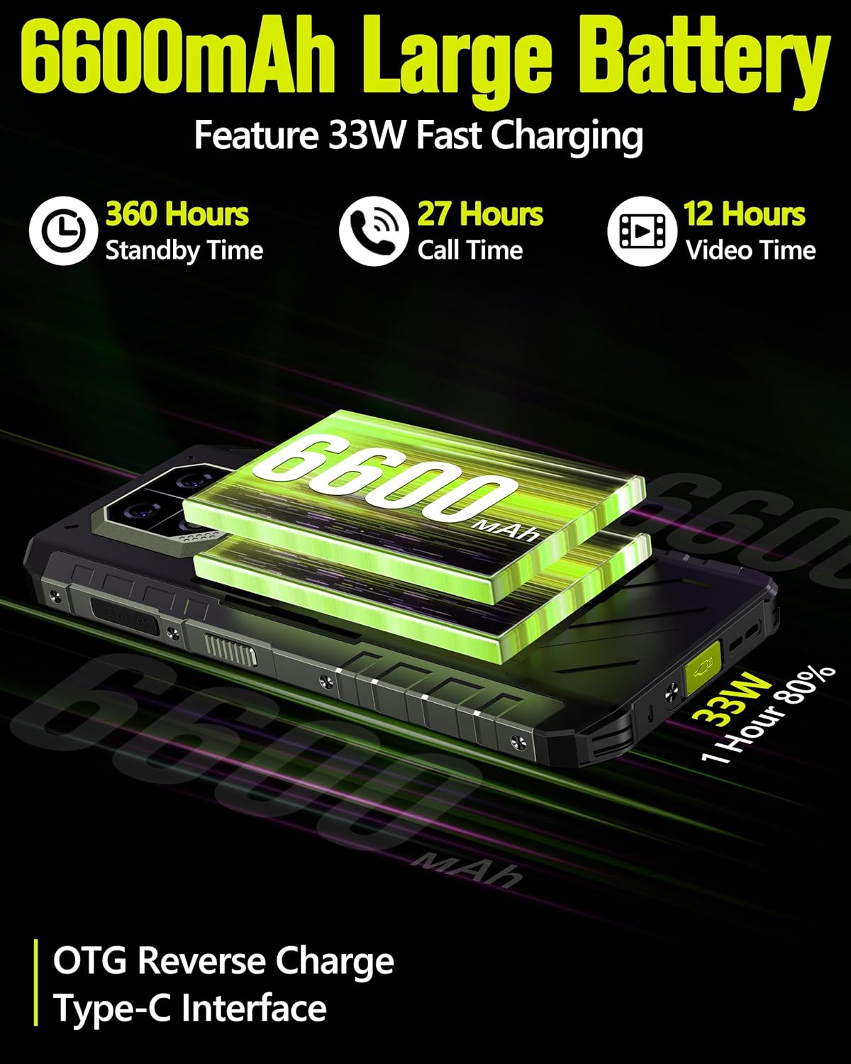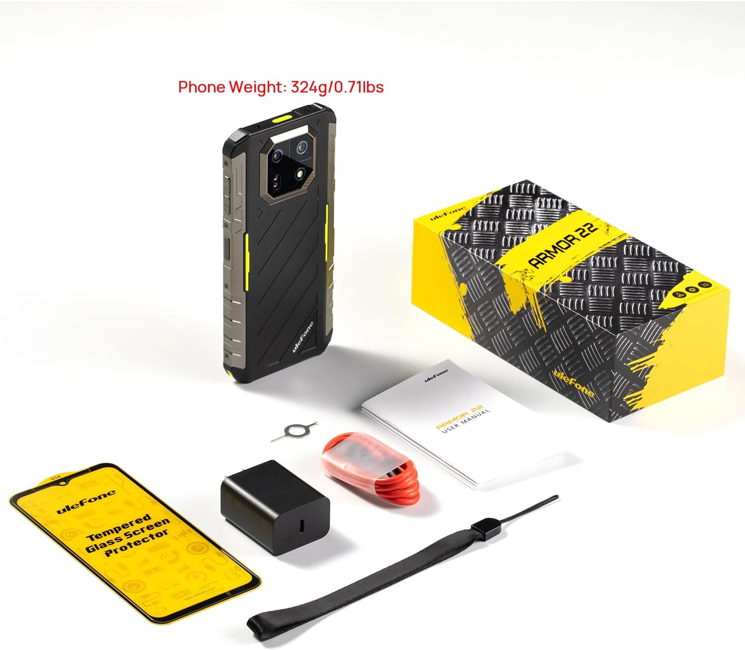 【6600mAh Battery & 33W Fast Charging】Armor 22 packs a 6600mAh large capacity battery, 360 hours standby time, 27 hours call time and 12 hours video playback. Its 33W fast charging saves the time and enables /your device always ready to use. The reverse charging supported feature helps you solve the urgent need to recover your watches, smartphone or earphones.