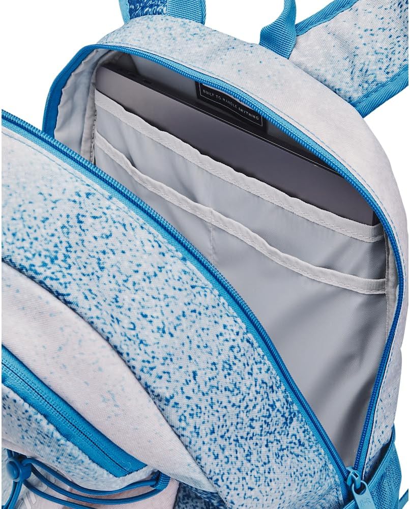 UA Storm technology delivers an element-battling, highly water-resistant & stain-resistant finish. Padded back panel & ergonomic straps for comfortable carry. Soft-lined laptop sleeve—holds up to 15″ MacBook Pro® or similarly sized laptop with organization panel. Front sleeve with bungee adjust pull cord for easily stashing a jacket, pair of shoes, or ball. Large, zippered front valuables pocket.