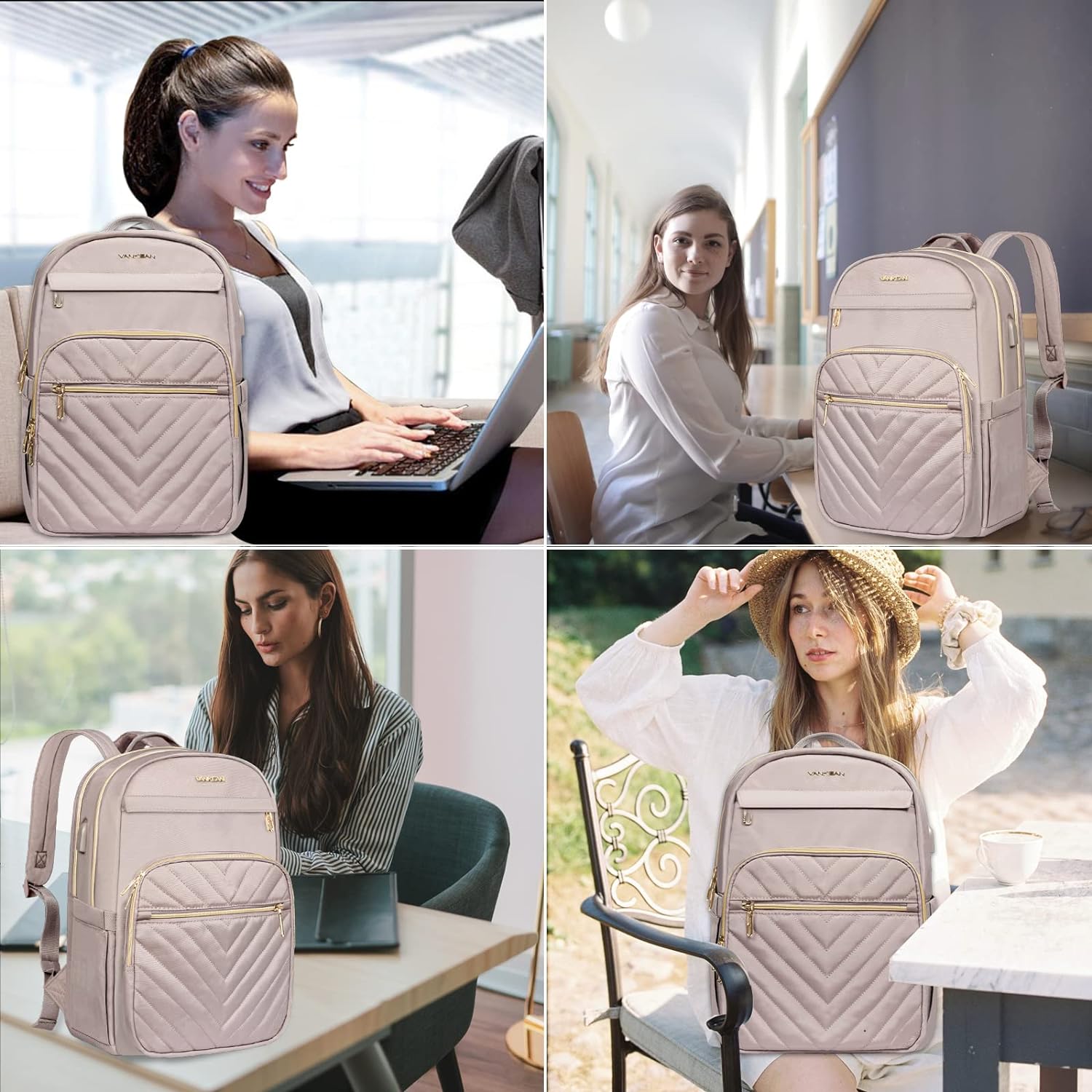VANKEAN 15.6 Inch Laptop Backpack for Women Work Bag Fashion with USB Port, Waterproof Stylish Travel Bags Casual Daypacks for College, Business, Light Dusty Pink