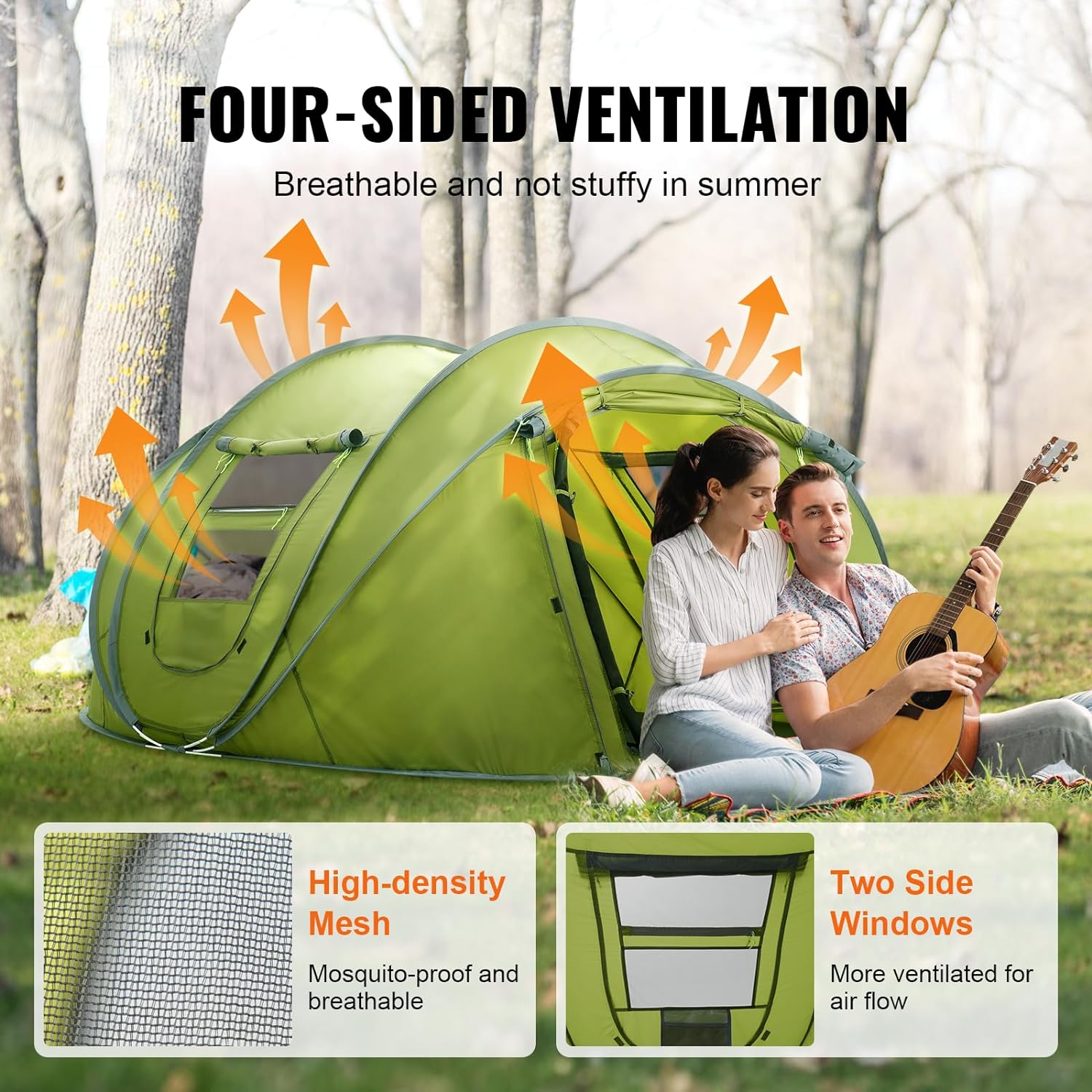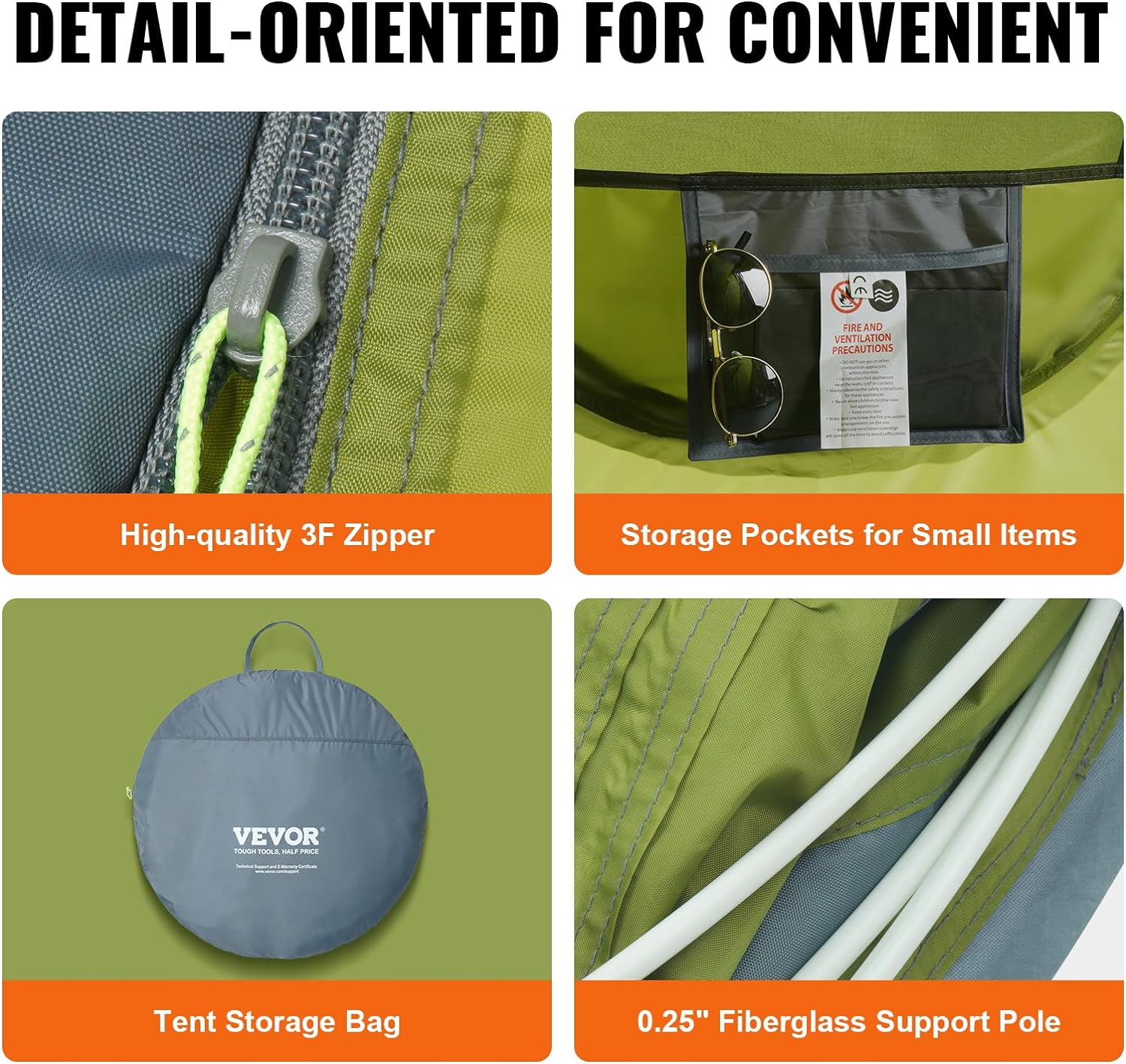 Unbeatable Camping Experience: This lightweight tent has 0.25″ fiberglass pop-up poles, smooth 3F zippers, and convenient inside storage pockets for small items. There’s also an E-Port at the bottom for easy access to power. It’s perfect for casual camping, backyard lounging, festivals, beach gatherings, and other outdoor events.