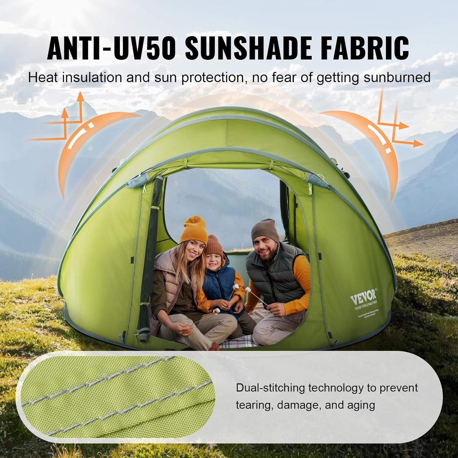Enjoy Your Summer: The camp tent is crafted from anti-UV50 sun-protection fabric, ensuring exceptional resistance to harmful UV rays even under the blazing sun. The fabric’s double-seam weaving technique prevents aging and tearing, extending its lifespan. Bid farewell to concerns about the scorching summer sun and the risk of getting tanned.