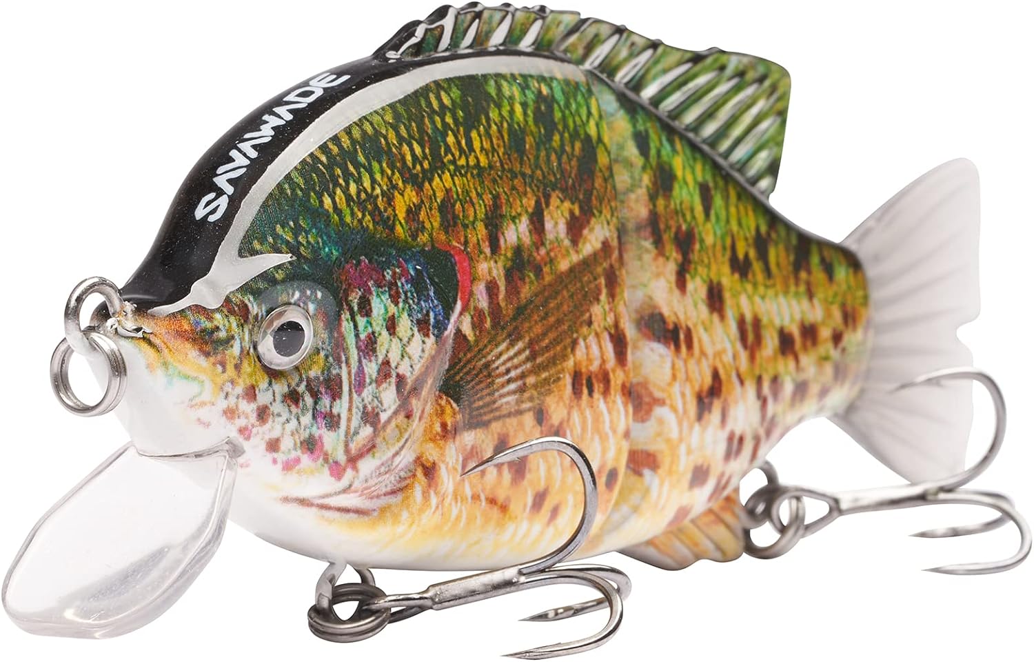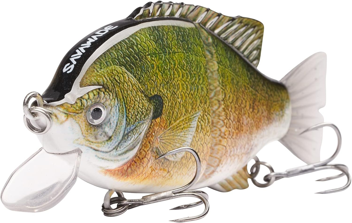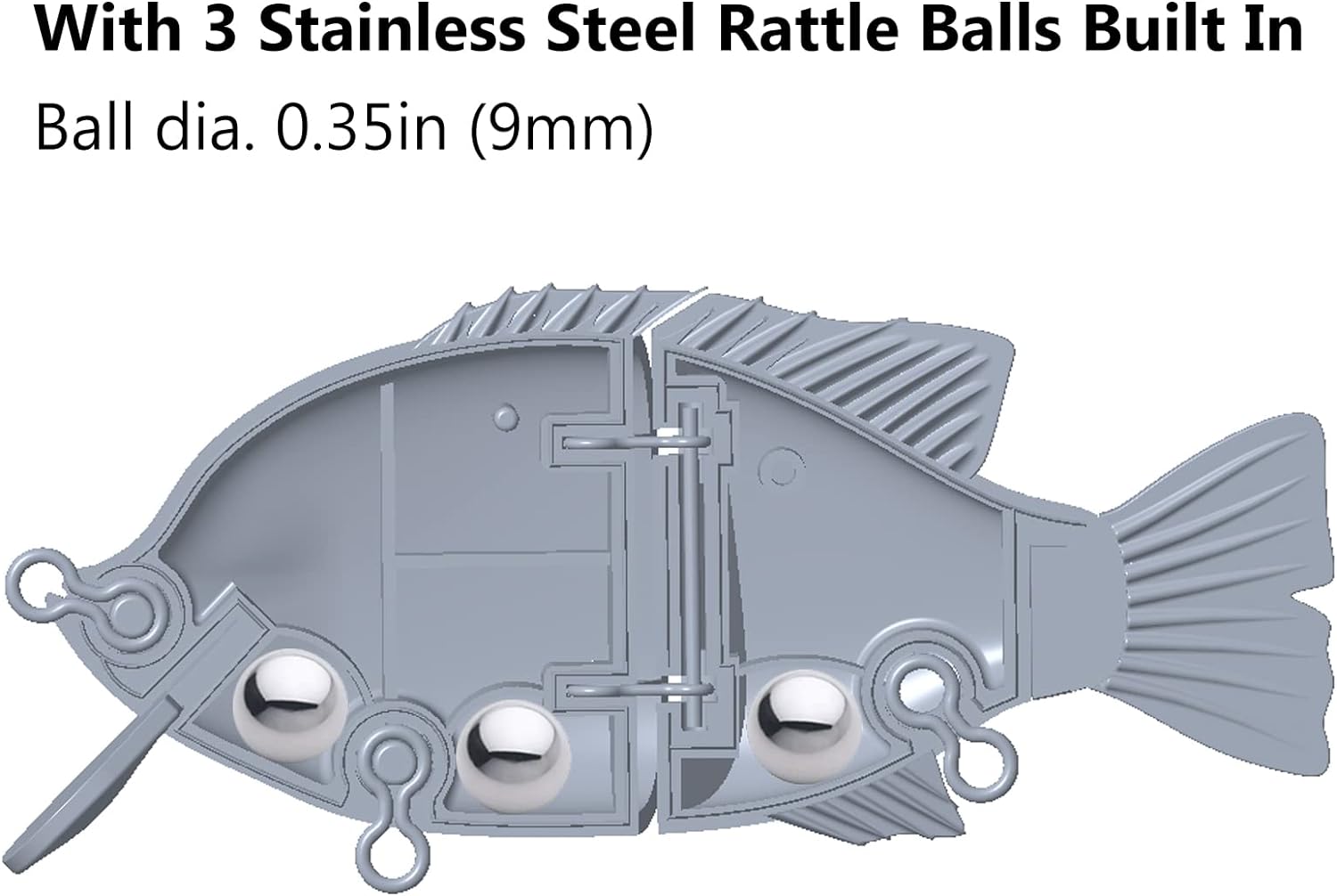 With three stainless steel rattle balls (ball dia. 0.35 inches) built in, along the bottom of the swim bait, to keep balance and for further distance casting, and the steel balls also produce a loud knocking noise that will surely attract bass to attack especially when water clarity is low, rather than lure action or color.Other features include the natural and realistic finish and profile, vivid 3D laser eyes; These waking baits are heavily targeted by bluegill eating bass