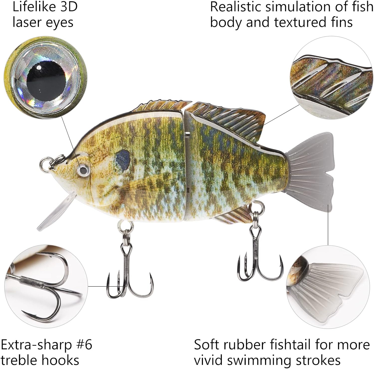 The hard swimbaits made of heavy duty ABS material can withstand the wear and tear from fighting fish; Metal Joints for extreme durability that will withstand pressure for catching monster size fish