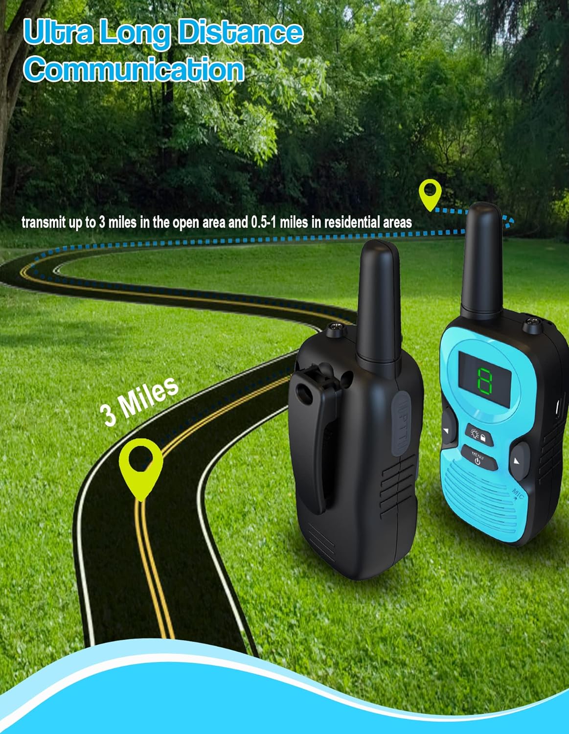 Walkie Talkies for Kids – Rechargeable 4 Pack: Walky Talky for Kids with Charger Battery – Walkie-Talkies Long Range Outdoor, Hiking, Camping Toys for 3-12 Year Old Girls Boys