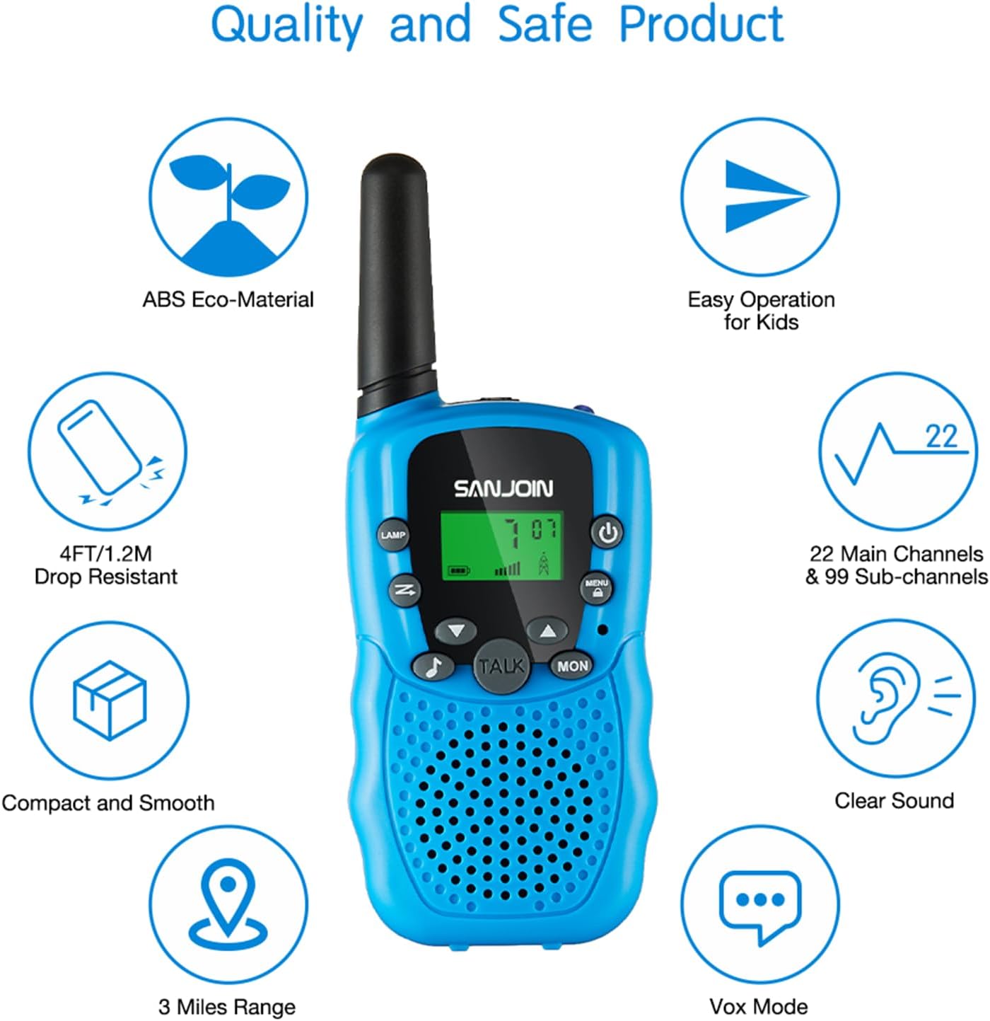 Long Rang Coverage : SANJOIN kids warlike talkies contains 22 main channels & 99 sub-channels, ensuring 3 mile wireless talkback. Open a world of possibilities within your child’s outdoor adventures!